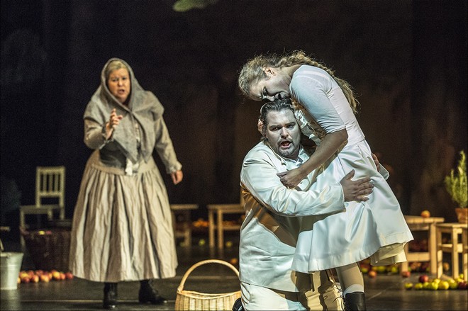 Doplnil bych ještě téma iluzí a planých ideálů, kterými si svazujeme svůj život. To, jak si svůj život „jinak myslíme“ a jak si na sobě i na druhých „zakládáme“, abych parafrázoval klíčová místa opery. Postavy sice zpívají dialogy, jež byly ve své době formálně jistě revoluční, naturalistické, živé a velmi konkrétní a jsou tu místo dlouhých monologů – árií, avšak když se ponoříte do hloubky, zjistíte, že si všichni vedou svou, neposlouchají to podstatné – hluboké volání duše. Zejména ve druhém dějství. Protože kdyby se opravdu poslouchali, nemuselo by k té děsivé tragédii dojít. Tohle čtení nám přineslo vizuální řešení druhého dějství, které asi bude vyvolávat největší kontroverze. Na něj se pak ve vrstvách nabalovalo vše ostatní. Od idealizovaných iluzivních kulis prvního dějství, onoho jabloňového sadu se stovkami jablek poznání či hříchu, až k abstrahujícímu dějství třetímu. Jako Jenůfa prochází iniciační cestou k poznání sebe sama, tak i my kráčíme očistnou cestou k prázdnému prostoru, který nabízí šanci na nový začátek.Která nastudování Janáčkovy pastorkyně jste jako divák měl možnost – ať už v divadle, nebo ze záznamu – vidět a které z nich vás nejvíc zaujalo?