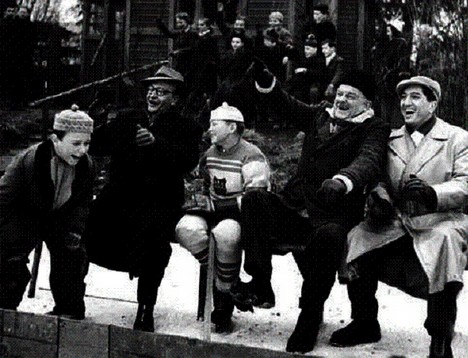 Jaroslav Marvan se učí ovládat svůj monstrósní susafón, J. Kemr své činely, Dědek se stal výborným bubeníkem, Em. Fiala hraje na pikolu, K. Effa na violoncello, J. Hlinomaz na pozoun, Ant. Jedlička na klarinet atd. (Kino, č. 26, 18. 12. 1952, s. 494.)