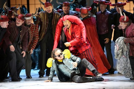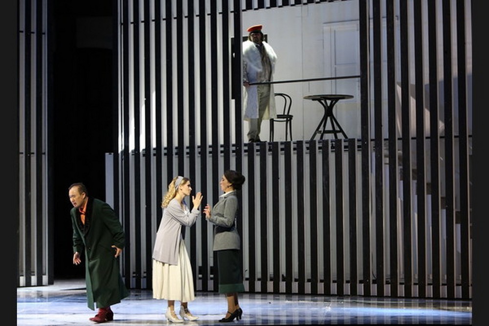 To sa ale uplynulý víkend neudialo. Nemecký tím inscenátorov vedený Martinom Schülerom, intendantom sotva stotisícového Cottbusu (jeho partnerským mestom sú Košice), sa pokúsil o akýsi výkladový posun, vyplývajúci z nemeckej postfelsensteinovskej inscenačnej estetiky. Tá má veľa odnoží, zub času z nej vyselektoval nadčasové hodnoty a povýšil ich na trendy. Schülerov rukopis im však ostáva verný skôr naoko. Číta partitúru akosi nekonzistentne a zdanie moderného divadla budí väčšmi do nedefinovaného času oblečenou scénou Hansa Dietricha Schaala a kostýmami Susanny Thomasbergerovej.