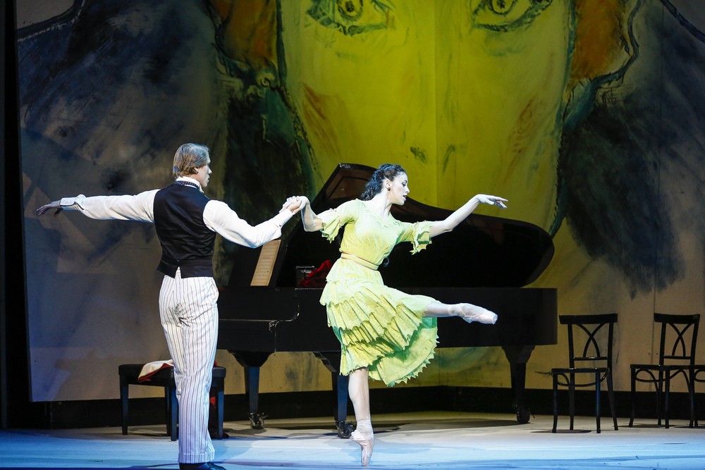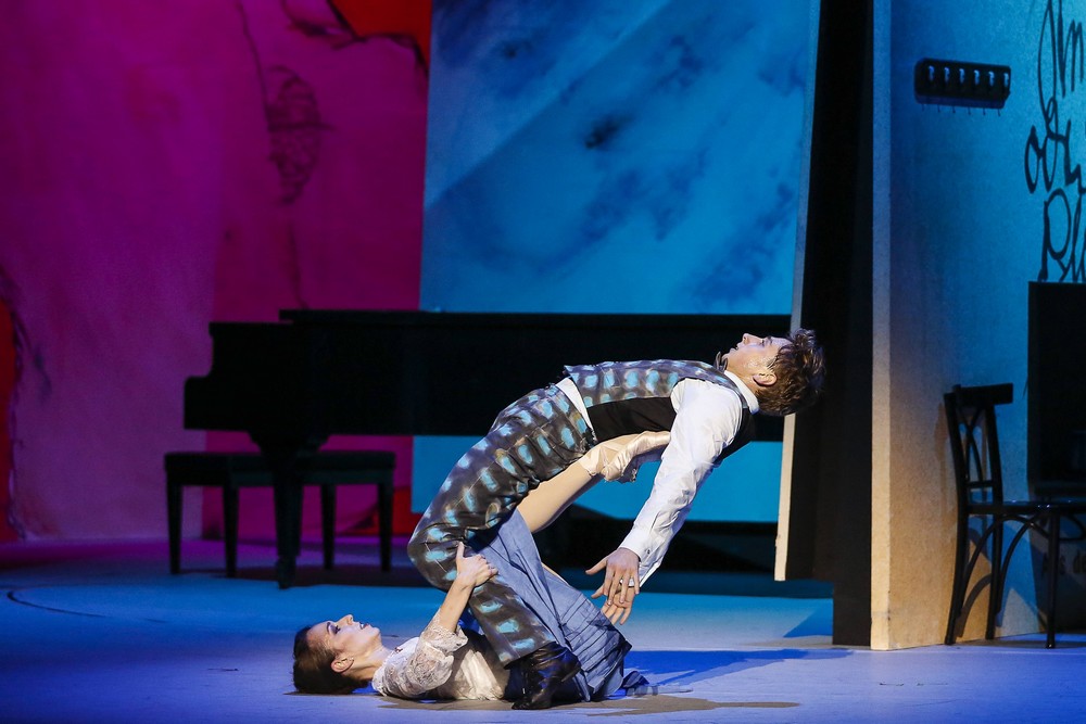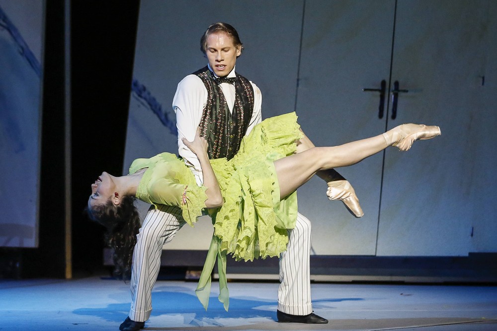 Druhé podarené miesto je dueto Schönberga a Mathildy. Rafinované, prekomponované, kolísajúce zvláštnym tempom i stavom emócií interpretov. Stavia na rozsahu baleríny a partner ju vedie do pôsobivých figúr. Je veľmi kompaktné, telo na telo. Roztomilá je aj siedma scéna v prvom dejstve v Café Central, kedy sa sólisti i zbor veľmi dobre premiešajú a Page konečne vytvorí zmysluplný, nápaditý tanečný roj. Je zaujímavé, že práve podobné ansámblové scény nezáväzného tancovania vychádzajú najlepšie. Page veľmi funkčne a nápadito cíti priestor, dvojice, ich pohybové vyjadrenie i cit pre tanec skupiny. Je otázkou, či dlhá prestávka od premiéry v reprízach spôsobila, že mnoho choreografie pôsobí kostrbato a interpreti s partnerskými figúrami zápasia, alebo je to chyba choreografa, ktorý má predstavu pohybového obrazu, ale nevie nájsť ideálnu cestu technického realizovania, ako sa do pózy interpreti dostanú a tiež ako sa z nej rozvinú ďalej.