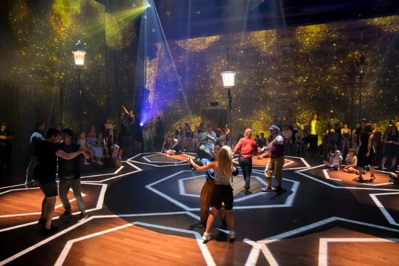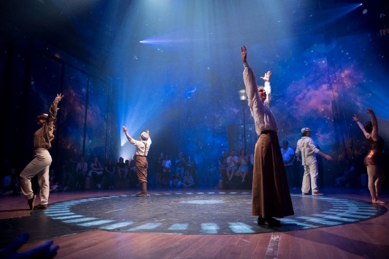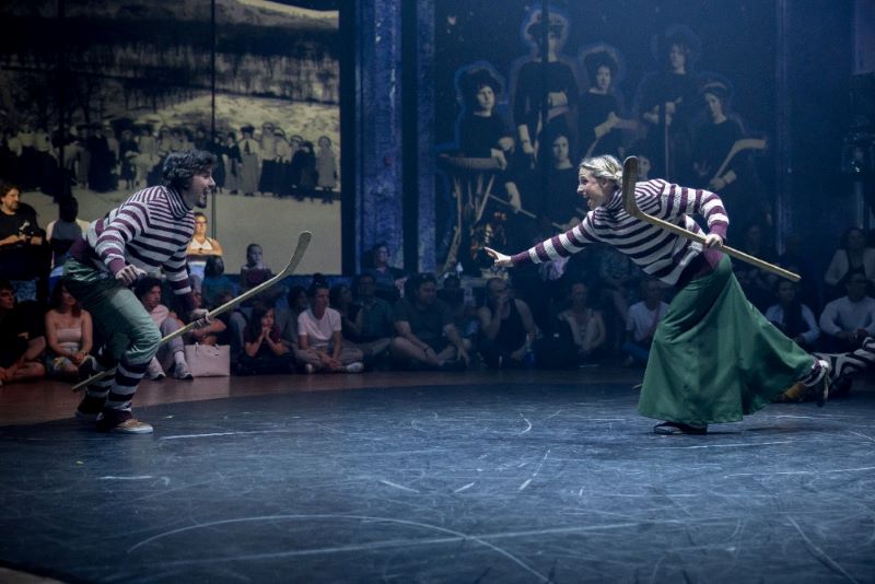Ukázkově kinetická scénografie vtahovala diváky do věrných i náznakových kulis minulosti spjaté s hromadným přesunem venkovanů do měst, navozovala nálady i atmosféru doby, zpřítomňovala architekturu, ale také vizualizovala myšlenky dvou hlavních protagonistů – slečny Éloïse Roberta mladíka Charlese Filliona. Panoramatické divadlo vedle skvěle odvedených cirkusových disciplín (cyr-wheel, lano, skateboard, čínská tyč/lampa, ekvilibristika na bicyklu, diabolo, kontorsionistika na strapsech ad.) zahrnovalo energické taneční choreografie evokující muzikál či break dance battle a herecké partitury ztvárňované slovem či náznakově s loutkami, kdy performer na své tělo připevnil látkový mini trup a vzniklou osobnost dějin doplnil svou hlavou. Sál skýtal možnosti hrát v několika výškových úrovních (tribuna, lampy aj.) a také v kruhovém středu, kolem kterého popocházeli či posedávali diváci. Klasické hlediště s místy k sezení pro osoby nedisponibilní sedět na podlaze nahradily dobové bedny, obestavěné retro kufry. Obě haly využívané pro představení by směle obstály i jako interaktivní expozice o neklidné době národního sjednocování, o kolonizaci kanadského území i ekonomickém a sociálním rozvoji země, a to se všemi důsledky.