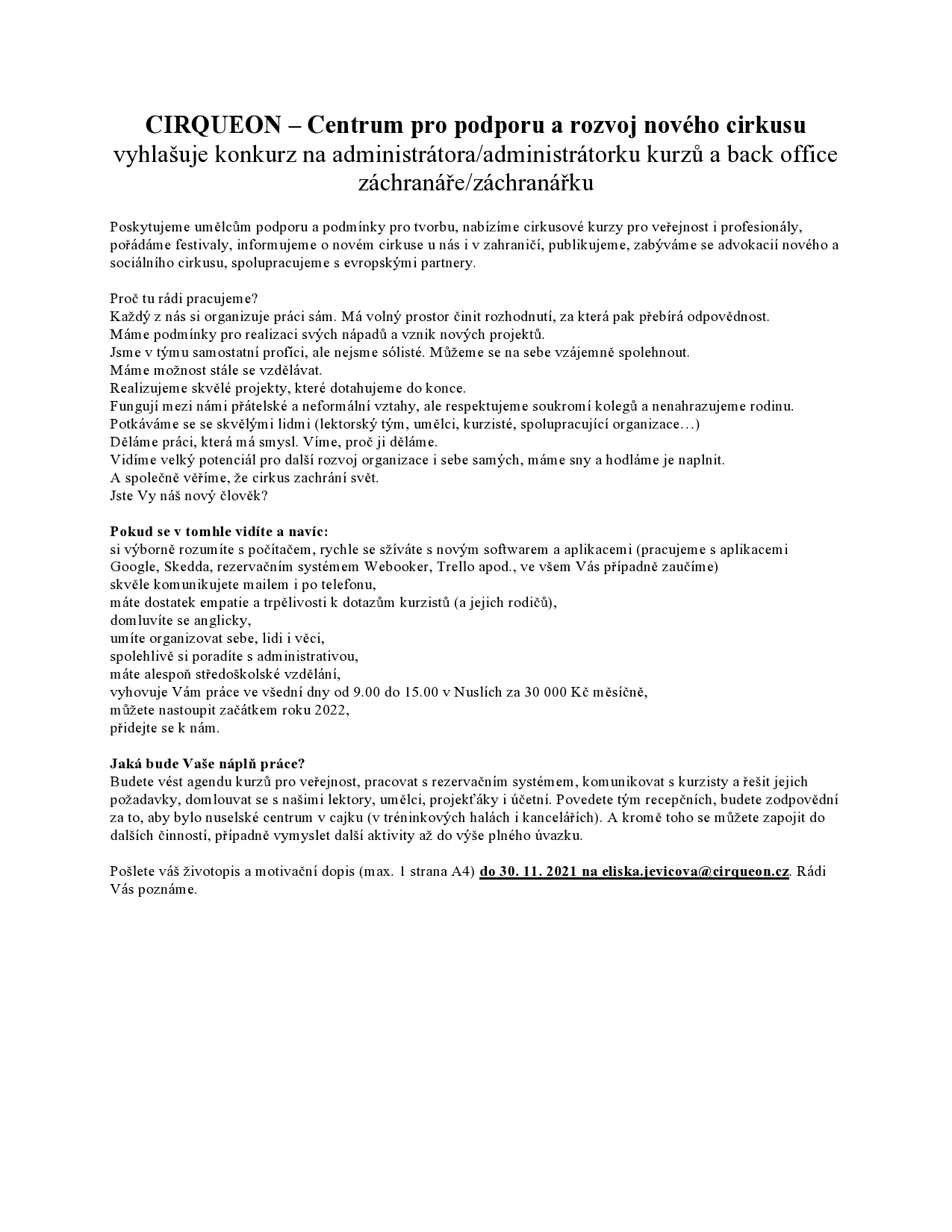Inzerce CIRQUEON vyhlašuje konkurz na administrátora a back office záchranáře Publikováno 24/11/2021 sdílejte: 0 minut čtení sdílejte: TémataSeznam inzerátů Sdílet článek Facebook email zkopíruj odkaz vytisknout sdílejte: Předchozí článek V Sukově síni proběhla hudební oslava stoletého výročí narození skladatele Vladimíra Sommera Další článek „V klášteře se tvoří snadno,“ shodují se hudební rezidentky Tuva Hellum a Kristina Barta 0 0 hlasy Ohodnoťte článek Odebírat Přihlášení Upozornit na nové a další komentáře nové odpovědi na můj komentář Label {} [+] Jméno* E-mail* Webová stránka Label {} [+] Jméno* E-mail* Webová stránka 0 Komentáře Nejstarší Nejnovější Most Voted Inline Feedbacks Zobrazit všechny komentáře Načíst další