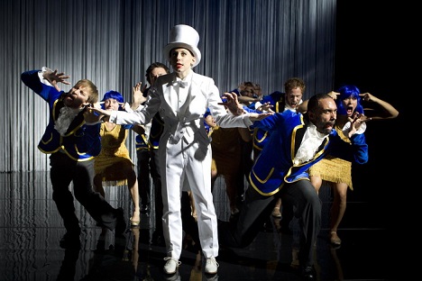 Nová scéna Národního divadla v Praze přijala v pohnutých dnech přírodní katastrofy hosty ze Švédska, kteří přivezli publiku inscenaci značně kontrastující s náladou v zemi. Ekmanův triptych s podtitulem Studie zábavy je choreografické dílo mladého tvůrce Alexandra Ekmana vytvořené pro proslulý soubor Cullberg Ballet a sklízející v Evropě velký úspěch. O hostování slavného souboru se jedná už od chvíle, kdy Nová scéna začala v čele se Štěpánem Kubištou pracovat na své pokrokové dramaturgii, Cullberg Ballet se tu na jediný večer ukázal po více než třiceti letech a Novou scénu vyprodal. I uchvátil.Ekmanův triptych je dílo, které má několik rovin. Rozebírá především nejcharakterističtější produkt populární kultury, televizní zábavu. A můžeme možná už škrtnout slovo televize, protože i když se blikající obrazovka svým tvarem a velikostí mění a divák přijímá stále častěji informace přes médium internetu, obsah zůstává jaksi stejný. Křiklavé barvy, důraz na show, škodolibá radost z těch nejstarších a nejprimitivnějších klaunských gagů, to se s typem média nemění, jen si obléká kabátek modernější elektroniky. U nás máme co do činění s přerušenou historií tohoto odvětví, náš zábavní průmysl ale během dvaceti let své západní kolegy dohnal s přehledem, takže si i my můžeme vychutnat trochu té společenské kritiky, kterou nám Ekman předkládá.