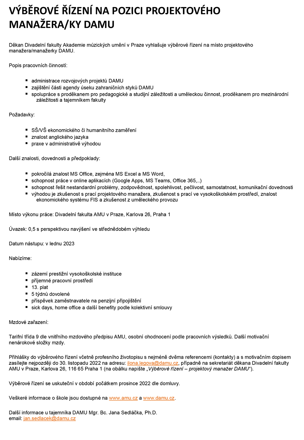 Inzerce DAMU vypisuje výběrové řízení na projektového manažera Publikováno 06/11/2022 sdílejte: 0 minut čtení sdílejte: TémataSeznam inzerátů Sdílet článek Facebook email zkopíruj odkaz vytisknout sdílejte: Předchozí článek Album týdne Normana Lebrechta: Hravý i vynalézavý Karol Szymanowski Další článek S neusměrnitelným zápalem a energií vstoupil Ensemble Tourbillon do koncertní řady FOK 0 0 hlasy Ohodnoťte článek Odebírat Přihlášení Upozornit na nové a další komentáře nové odpovědi na můj komentář Label {} [+] Jméno* E-mail* Webová stránka Label {} [+] Jméno* E-mail* Webová stránka 0 Komentáře Nejstarší Nejnovější Most Voted Inline Feedbacks Zobrazit všechny komentáře Načíst další