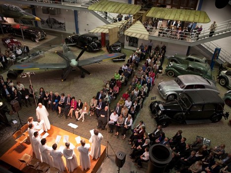 Možná nejkurióznějším prostorem, v němž jsme zpívali, byla výstavní hala Národního technického muzea v Praze. Zde jsme vystoupili loni v rámci festivalu Pražské jaro. Dramaturgy lákalo spojení „chrámu“ techniky se starobylým duchovním zpěvem. Dlouho jsem přemýšlel o vhodném programu. Pak jsem se rozhodl pro titul pro Homo viator – Člověk putující. Tváří v tvář parním lokomotivám a pod zavěšenými dvojplošníky jsme se prostřednictvím středověkých zpěvů zamýšleli nad duchovní symbolikou cesty. S recitací souvisejících textů se k nám přidal i bratr Marek, který některé literární ukázky přednášel na lokomotivě z okénka strojvedoucího.
