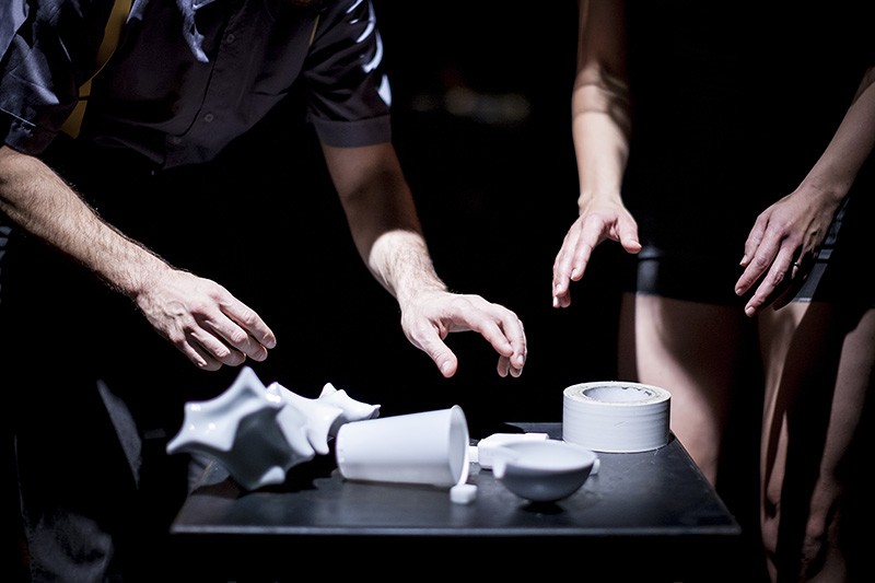 Anotace v programu, které připomínají absurdní poezii, ve mně vždy vzbuzují podezření. Za složitým textem se často skrývá poetické představení, které naštěstí není zdaleka tak komplikované jako jeho popis, ale nutkání tvůrců popsat je slovy, jež nedávají smysl, mi bylo a je záhadou. Inscenace Vessels, pod níž je jako autor režie i choreografie podepsán Ital Davide Sportelli a interpretuje ji společně s českou tanečnicí Terezou Hradilkovou, je choreografií pro „poloprůsvitná těla, váhající mezi tím, co sdílet a co si ponechat, mezi prázdnotou a zaplněním“. Vznikla na základě rezidencí v několika uměleckých prostorech v České republice i v zahraničí, část se odehrála v rámci workshopu, který v Praze pořádala SE.S.TA.