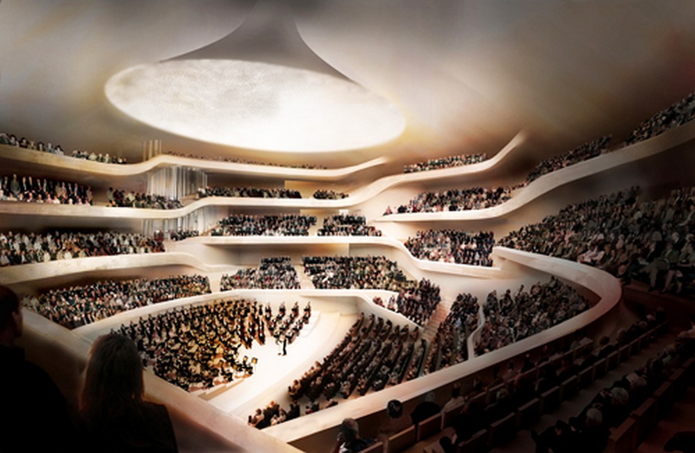 V seriálu jsme spolu prošli výjimečné koncertní síně a hudební divadla na světě. Výjimečné po stránce architektonické i akustické. Navštívili jsme klenoty moderní architektury na třech kontinentech – v Evropě, Severní Americe a Asii. V závěrečném dílu se ještě pojďme podívat na to, co z neobyčejných architektonických počinů věnovaných hudbě se chystá. Není toho málo. Zejména Čína jako nejrychleji rostoucí ekonomika věnuje do moderní architektury zasvěcené hudbě mnoho úsilí i peněz. Ale ani Evropa nezaostává. Trendem jsou hladké křivky vnějších i vnitřních prostor umocňující harmonii a evokující tvary těla zvířat či rostlin a dokonalá (mnohdy až nadpozemsky dokonalá akustika). Co se tedy v moderní architektuře věnované hudbě chystá?