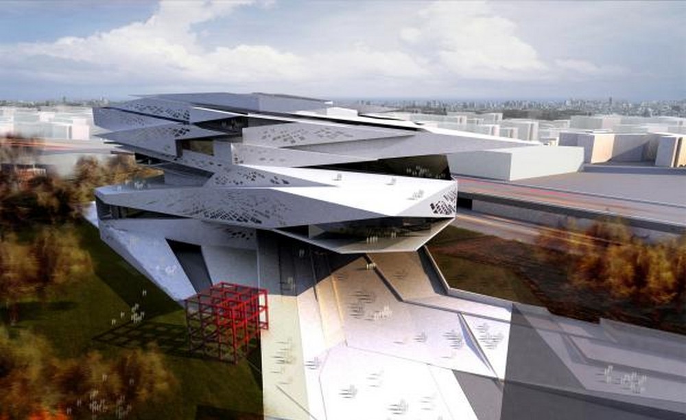 Velkolepý projekt architektonického studia Zaha Hadid z roku 2012, jehož stavba byla v tomto roce také zahájena, je vládou Ázerbájdžánu zatím pozastaven. Architektka Zaha Hadid v projektu multifunkčního kulturního centra nezůstala nic dlužná své pověsti hladkých přírodních tvarů, které vycházejí z podobnosti se stavbou těla obratlovců i bezobratlých (jak podobný výtvarný styl má tato světově proslulá architektka a Jan Kaplický!). Budova zvnějšku podobná mořským mantám volně a ladně plujícím ve vodě a zvedajícím okraje svých širokých talířovitých ploutví nemá jedinou ostrou hranu nebo pravý úhel, a to vně ani uvnitř.