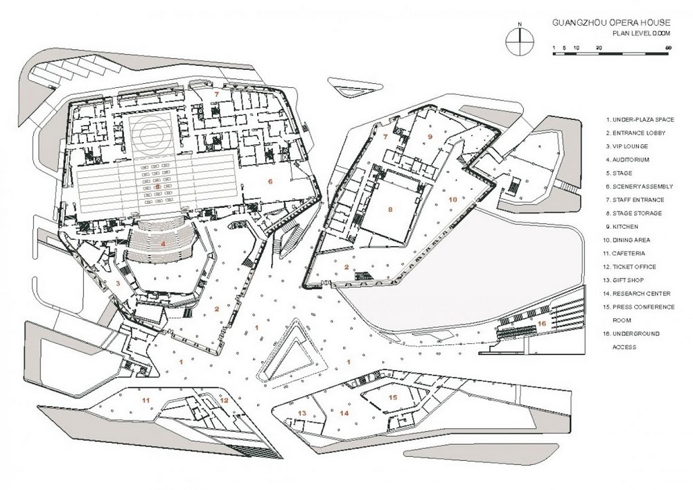 Operní komplex v Guangzhou není v žádném případě svázán s urbanismem města, ani nereflektuje historický stavební vývoj v místě. Byl postaven v nově zbudované čtvrti, která vznikla na břehu Perlové řeky jako obchodní a jejíž dominantou jsou dvě věže obchodních mrakodrapů Guangzhou Twin Towers, dokončené v roce 2006. Guangzhou Opera House je vlastně budova ve stínu levé z věží při pohledu přes řeku. Jako většina developerských projektů financovaných v Číně z veřejných zdrojů jsou i počátky Guangzhou Opera House spojeny s velkými evropskými developery. V tomto případě s německou skupinou Obermeyer Group, která dobře ví, že čínské veřejné zdroje je možné využít právě ve prospěch evropských developerů a projektantů. A tak při budování nové čtvrti, jež projektově a subdodavatelsky zaštiťovala právě německá skupina Obermeyer Group, padl i návrh na vybudování ambiciózního operního divadla, které by dalo celému regionu punc výjimečnosti. Místo pro něj v rámci nově budované obchodní čtvrti bylo samozřejmě zvoleno v blízkosti Perlové řeky a v uskupení s dalšími budovami, které slouží kulturním účelům (Dětský palác, Guangzhou městská knihovna a Muzeum provincie Guangdong).+++
