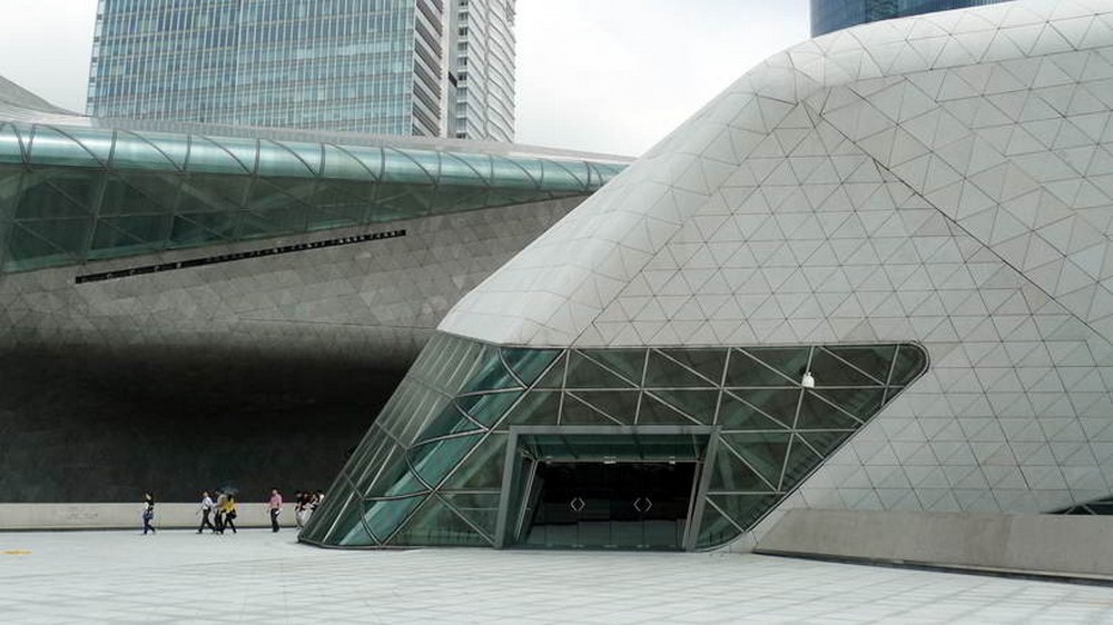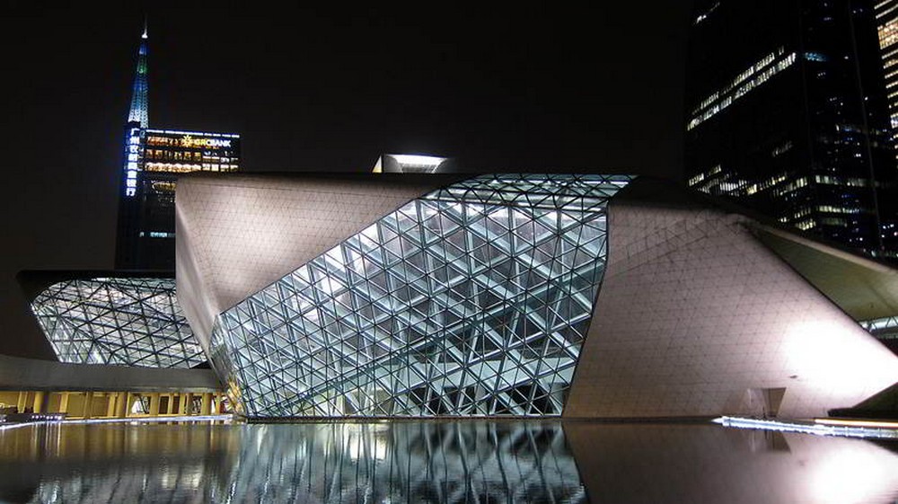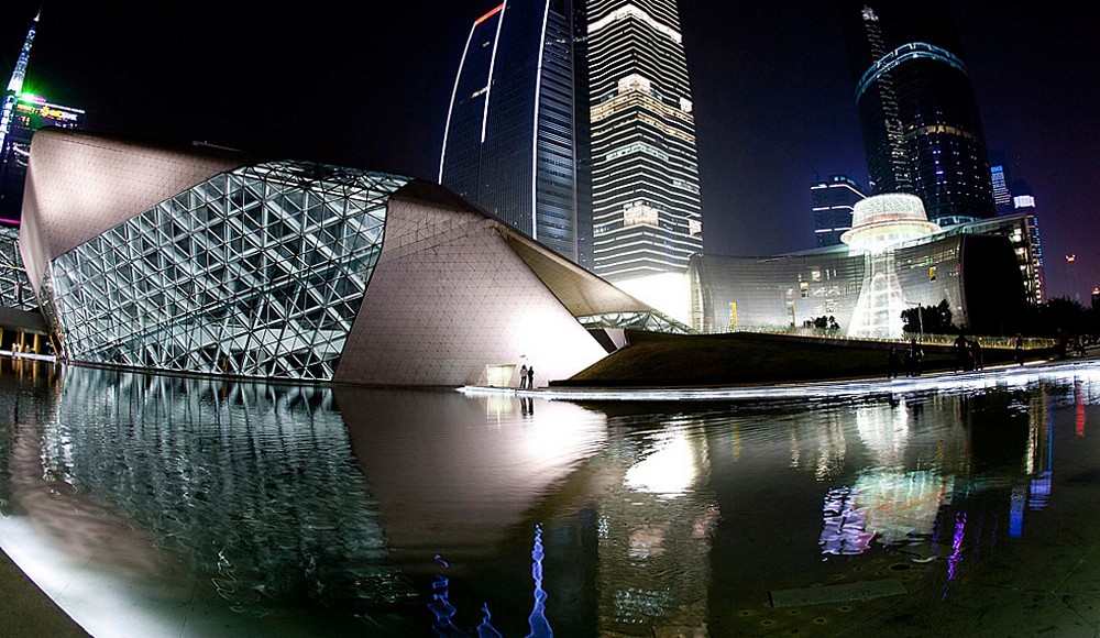 Jako první nahlédnutí jsem vybral komplex otevřený v roce 2010 v průmyslovém městě na březích Perlové řeky – Guangzhou. Město, které leží v provincii Guangdong, je od nepaměti přirozeným centrem více kultur. Jeho více než dva tisíce let stará historie spojuje kultury jihovýchodní Asie, Středního východu, ale také evropských obchodníků, kteří přišli do oblasti s Marcem Polem v polovině šestnáctého století. Město samo leží asi 300 kilometrů severozápadně od Hongkongu. A stejně jako čtrnáct dalších čínských měst bylo Guangzhou prohlášeno v roce 1984 zvláštní ekonomickou zónou. To vedlo k jeho rychlému ekonomickému rozmachu ještě v minulém století a nyní patří aglomerace města Guangzhou mezi ekonomicky nejsilnější čínské oblasti. Populace samotného města a aglomerace čítá přes deset milionů obyvatel. Zajímavostí je i to, že od roku 1994 aglomerací vede jediná doposud dokončená dálková rychlostní silnice spojující region s další aglomerací od roku 1984 zařazenou mezi zvláštní ekonomické zóny v Číně – Shenzenem.