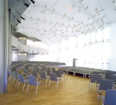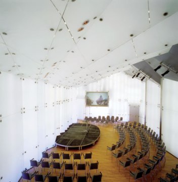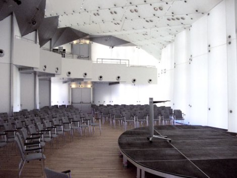 Hollein si pro koncertní sál, vestavěný do prostor zámku, jako primární materiál vybral sklo. Pracoval s předním rakouským odborníkem na akustiku Karl-Heinzem Müllerem, aby vytvořil takový profil a složení lepených skleněných panelů, které budou akusticky nejvhodnější. Vznikl tak prostor obložený velmi různotvarými profilovanými skleněnými sendvičovými panely v bílé barvě, který je i přes použitý materiál akustický.