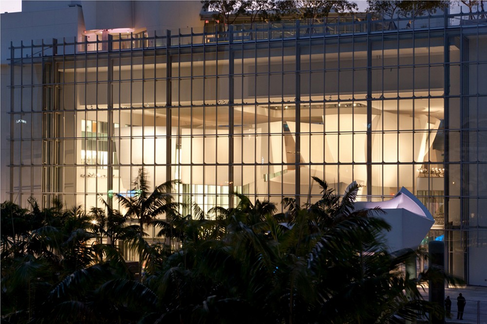 Rozdíly jsou však patrné právě zvnějšku. Mnoho zakřivených ploch odrážejících odlesky slunce u Walt Disney Hall je v Miami nahrazeno sklem a vzdušností. A tak losangeleská monumentalita architektury je v Miami nahrazena vzdušností a lehkostí. Architekt Frank Gehry projektoval budovu na přání svého dlouholetého přítele zakladatele Filharmonického orchestru v Miami, dirigenta a skladatele Michaela Tilson Thomase. Orchestr v Miami tento umělec založil v roce 1987 jako studentský orchestr miamské konzervatoře. Orchestr fungoval díky velkorysému daru lodní společnosti Carnival Cruise Lines, která jako základní jmění vložila do jeho vínku sedmdesát pět milionů dolarů. Postupně se ze studentského orchestru stal klasický filharmonický orchestr. A ten potřeboval k provozu odpovídající prostory. Byly zakoupeny dvě parkovací plochy za Art Deco promenádní čtvrtí na South Beach, a tím byla určena poloha budoucí koncertní síně. V sousedství jedinečného souboru Art Deco staveb podél pláže South Beach , která je nemovitým světovým kulturním dědictvím UNESCO.