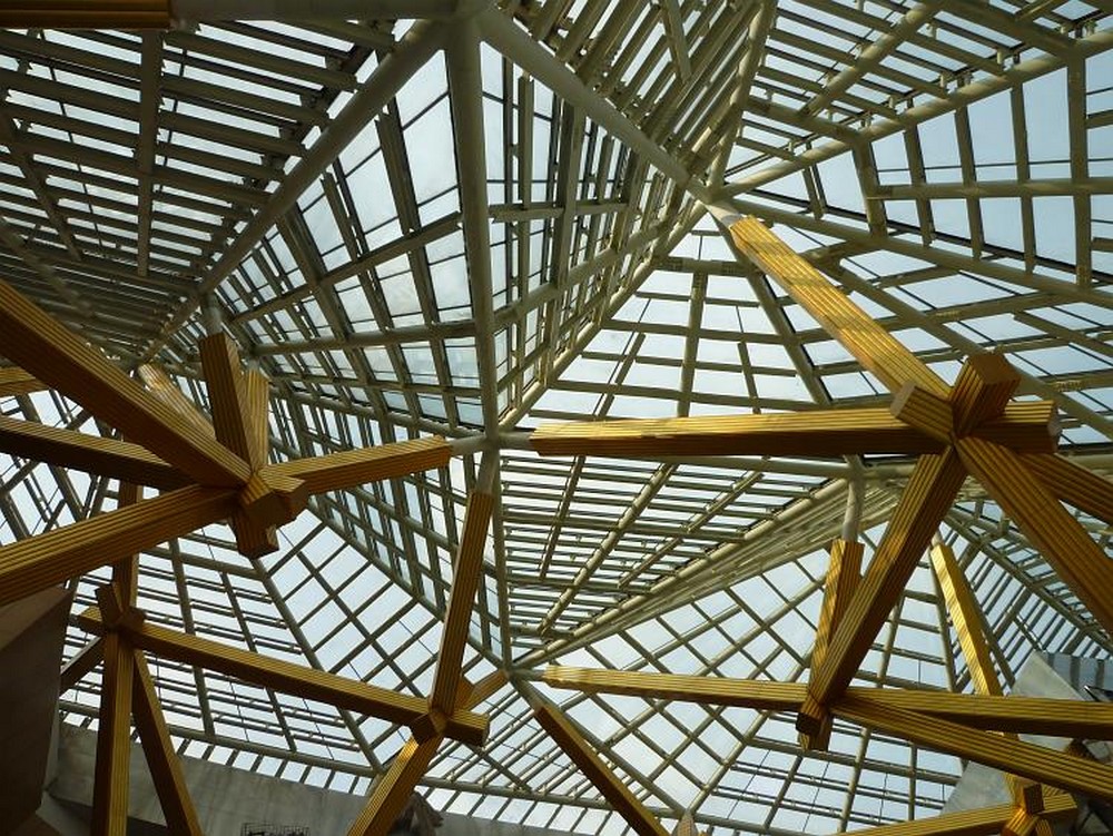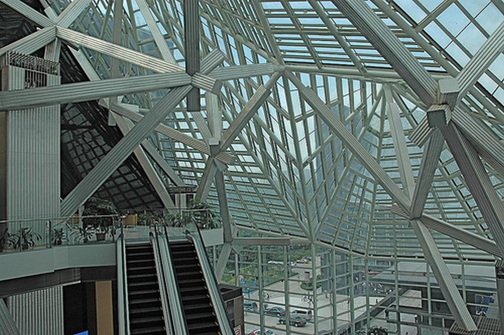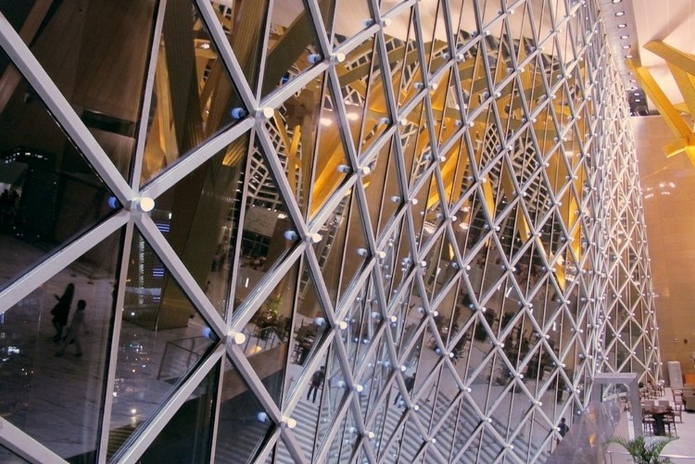Konstrukce budovy působí nesmírně lehce a elegantně, a to jakkoli zapadá do estetiky okolní architektury, vyznačující se sklem jako hlavním vizuálním prvkem vnějších částí budov. Základní přízemní patro budovy je obloženo žulovými deskami a z nich se zvedá neuvěřitelně subtilně působící konstrukce ze skla a oceli. Odlehčeně působí budova nejenom na pozorovatele vnějšku, ale díky prakticky kompletní skleněné fasádě včetně částí střechy a tím dokonalému pronikání denního světla tak působí i uvnitř.