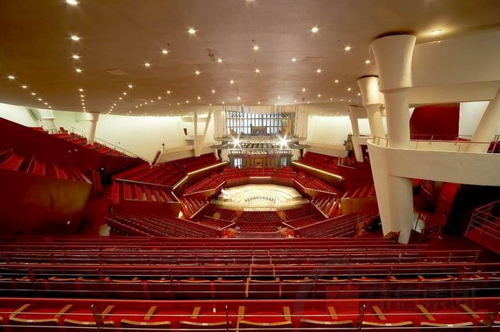 Koncertní část má 1 680 míst k sezení v takzvaném Symfonickém sále a přestavitelných čtyři sta míst v Divadelním studiu. Samozřejmě k vybavení patří zkušební sály, kavárna a restaurace, pochopitelně s tradiční čínskou kuchyní. Uspořádání Filharmonického sálu je oktagonální s orchestřištěm uprostřed a prosklenou částí, kterou do sálu vstupuje denní světlo. Vlastní orchestřiště má k dispozici třicet šest plošin, kterými je možné pohybovat v horizontálním směru, tak aby se sólisté či sbor mohli umístit v co nejvhodnější výšce odpovídající typu provozované hudby.