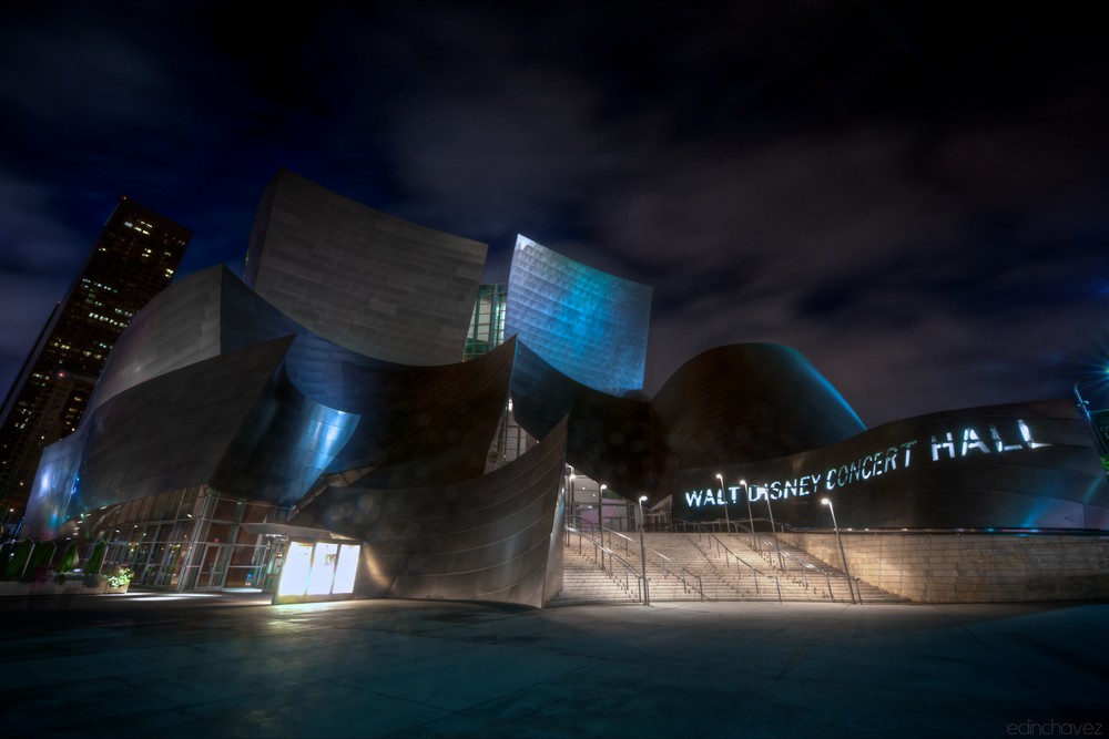 Nyní je tato koncertní síň ikonickým architektonickým dílem a středobodem mezinárodní hudební scény. Začátky však tento pokrokový architektonický objekt měl velmi těžké. V roce 1987, kdy ateliér Frank O. Gehry & Associates vyhrál soutěž na tento koncertní dům, čítal všehovšudy třicet zaměstnanců a počítačové modelování architektury bylo v plenkách. Přesto návrh zmíněného architektonického ateliéru přesvědčil výběrovou komisi, stejně jako i tři rozdílné subjekty v druhém největším městě USA – Los Angeles Philharmonic, Los Angeles County a Disneyho rodinu – o tom, že ač jde o vizi malého projekčního týmu, dokáže za pomoci větších spřízněných firem tuto na tehdejší dobu velmi neobvyklou stavbu dotáhnout až do zdárného konce.Od roku 1991 pracoval Frank Owen Gehry a jeho spolupracovník James Glymp ve speciálním počítačovém programu pro třírozměrné modelování objektů na vývoji aerodynamických systémů pro francouzský letecký průmysl. To Gehrymu umožnilo seznámit se s virtuálním computerovým modelováním do té míry, že si troufl prostřednictvím stejného programu navrhovat nejenom technologické strojní komponenty, ale celou rozsáhlou stavbu inspirovanou vzduchovou aerodynamikou. V mezidobí také Gehryho architektonický ateliér vyhrál zakázku na návrh muzea ve španělském Bilbau, které je pojato také ve stylu architektury respektující aerodynamiku. Zakázka pro Bilbao nejenom že přinesla Gehrymu respekt a uznání, ale počet zaměstnanců jeho ateliéru se zvýšil z třiceti na sto třicet (nyní jich jeho ateliér má již přes dvě stě).+++===Díky zakázce pro Bilbao se Gehrymu uvolnily ruce a byl tak v tu chvíli schopen prosadit svojí neotřelou koncepci aerodynamického domu i v Los Angeles; mohl přestat bojovat s odpůrci projektu, kteří ho museli začít respektovat pro jeho úspěch v Evropě.