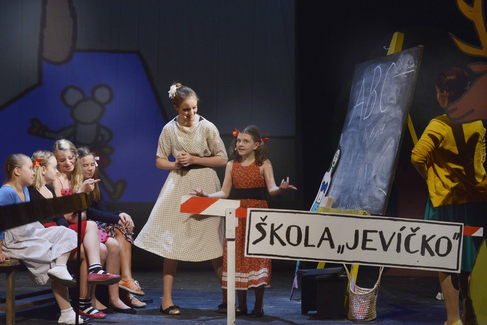 Ani ne tři čtvrtě hodinová první část rychle uběhne a po pauzičce se rozveselení diváci vracejí na svá místa, aby se těšili na druhé jednání, které se odehrává ve škole. Účinkující mládež se vrací do školních škamen, aby nám se dvěma učitelkami ukázali, jak to u nich ve škole chodí. A zase se hodně nasmějeme. V představení se vystřídá skoro šedesát dětí a vše se bere jako kolektivní záležitost. V programu nejsou totiž uvedeni interpreti sólových rolí.