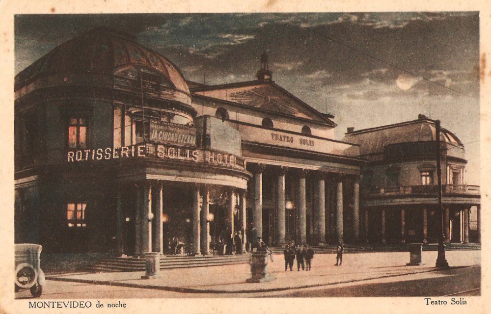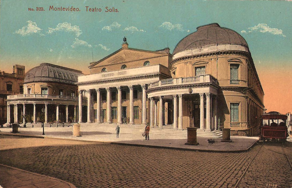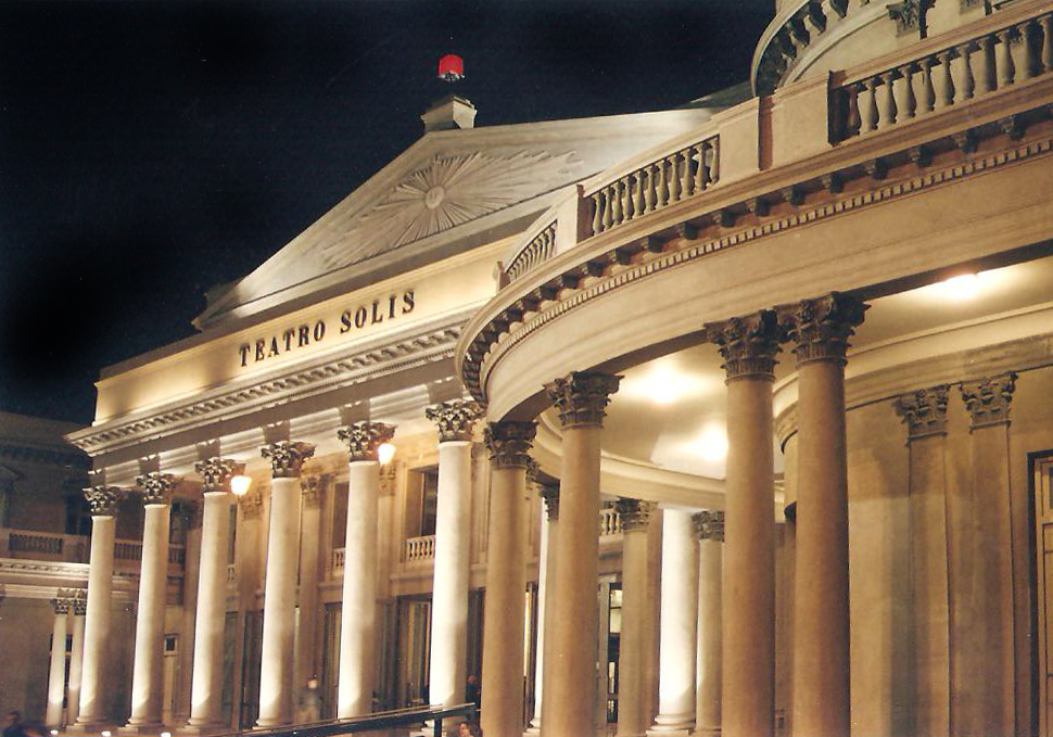 Tak třeba z Buenos Aires je nejlepší (a také nejlevnější) zvolit výlet do uruguayského největšího města po vodě. Po dvou a půl hodinách plavby širokým zálivem řeky Río de la Plata nás tam rychle a spolehlivě dopraví rychloloď (80 km/hod) společnosti Buquebus. Pohled na město z přistávajícího plavidla není nikterak impozantní. Dojem se poněkud změní, když zvolíme pěší cestu do mírného kopečku změtí uliček starého koloniálního města. Asi po dvaceti minutách chůze se dostaneme prakticky do centra. V samé blízkosti ústředního náměstí Plaza Independencia se nachází budova Teatra Solís, nesoucí jméno po známém španělském mořeplavci (Juan Díaz de Solís). Divadlo, v podobě jak je můžeme spatřit dnes, je pochopitelně dosti odlišné od toho, které bylo otevřeno roku 1856 po čtrnácti letech výstavby uvedením opery Giuseppe Verdiho Ernani. Jednoduché klasicistní tvary dal tehdejší stavbě do vínku italský architekt Carlo Zuichi. V další fázi byla po třinácti letech podle návrhů francouzského architekta Victora Rabu k hlavní budově přistavěna ještě dvě boční křídla, čímž se dostalo vzniklému komplexu na velikosti a také velkoleposti. Plocha divadla se tak zvětšila na více než 5400 metrů čtverečních, což je přibližně dvakrát více než půdorys budovy Státní opery v Praze. Zajímavé je, že výška budovy divadla není nijak velká a ve srovnání s vedlejší moderní, architektonicky fádní výškovou budovou, působí jako trpaslík.