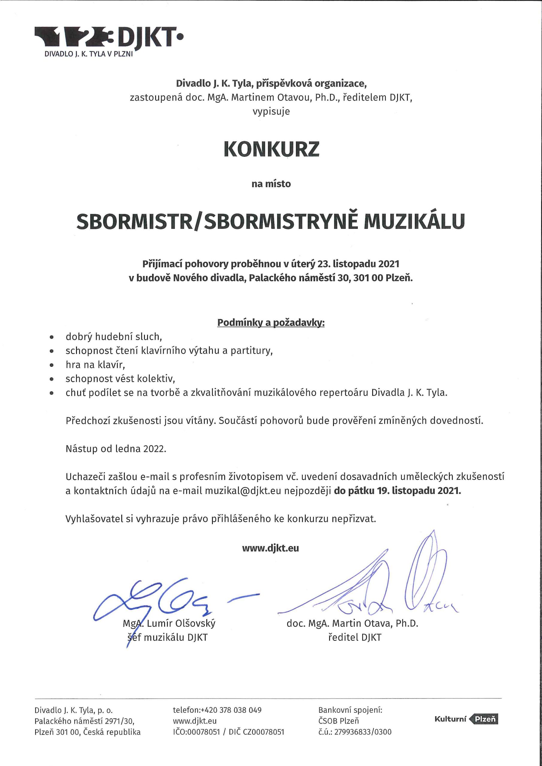 Čtení Divadlo J. K. Tyla vypisuje konkurz na místo sbormistra muzikálu