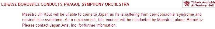 Dirigentem všech koncertů je mladý, u nás dobře známý Polák Łukasz Borowicz, který nahradil dlouhodobě nemocného Jiřího Kouta – k lítosti Japonců, o čemž svědčí i podobná programová oznámení, jako třeba tohle: