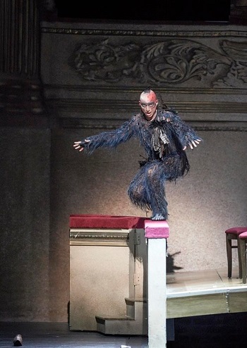 Zcela jinak je pojatý Prosperem týraný Caliban. Není jen tvor mezi člověkem a zvířetem, také hlasově je posazen mezi tenor a kontratenor. Thomas Ebenstein tuto vedlejší roli, která se stala vlastně hlavní, herecky plně vychutnává.