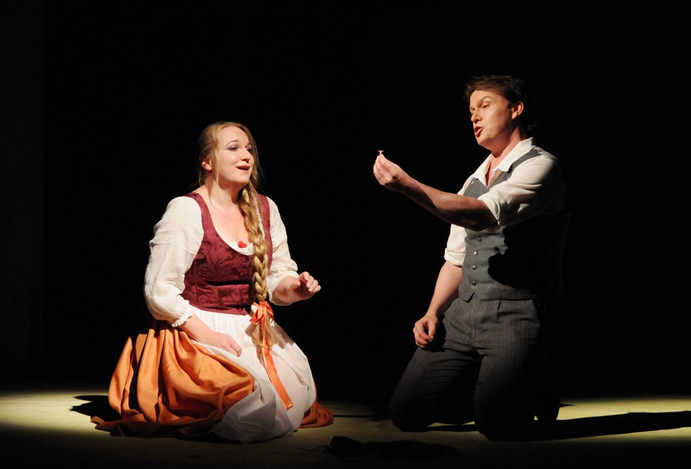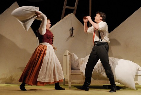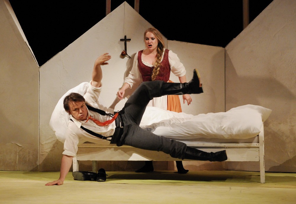 Mařenka Ivany Veberové nám po interpretaci heroin trošku zpykničtěla, bylo zřejmé, že nejvíc je jevištně „doma“ ve třetím dějství v temperamentní razanci polštářového souboje s Jeníkem. Známá árie, končící zajímavě přímo v přichystané posteli a pod peřinou (symboly polštářů se vznášejí coby leitmotiv nad scénou), byla zazpívána kantabilně, s výrazovým citovým nasazením. Poté za ní nepřijde, leč spíše vleze Jeník jakoby po vzoru Lukáše z Hubičky, jen jsem čekal, že se splete a namísto „Mařenko má, ty hvězdo mého žití“ zapěje ono Lukášovo „Chachacha, teď začnem znova…“ Mařenka v posteli, tak by se text Hubičky hodil skoro víc… Ne, nestalo se, text i hudba proudila krásně, tak jak je ve Smetanově partituře. Ivanu Veberovou jsem vyzdvihl jako skvělou Giocondu i Tosku, její Mařenka je již hlasově více mladodramatická než lyrická, což je ale v pořádku. Podobně jako Jeník, může mít i Mařenka oborové spektrum širší a odpovídá to zcela interpretační tradici. Ivana Veberová zařadila do své galerie Mařenku jako další závažnou a úspěšnou roli.