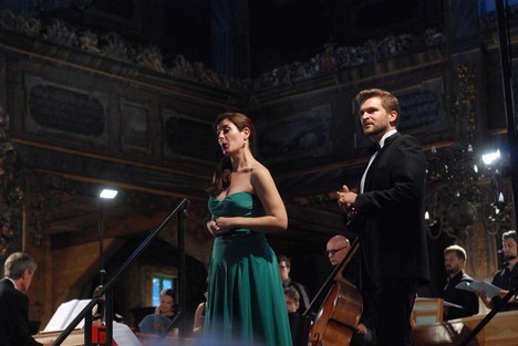 Zřejmě benjamínek inscenace, ideální představitelka Zerliny, půvabná Jolanta Kowalska-Pawlikowska studovala, jak mi řekla, na hudební akademii v Krakově a také sbírala zkušenosti v Londýně. Zatím angažmá v operním divadle nemá, ale hodně zpívá právě s Capellou Cracoviensis. S tou (a také dvěma pěveckými kolegy ze současné inscenace) se například zúčastnila loňského roku na jaře Mezinárodního festivalu duchovní hudby v Brně, a to provedení Händelova oratoria Israel v Egyptě. Jejím pěveckým partnerem, tedy Masettem, byl robustní Jacek Ozimkowski, zpívající odlehčeným basem; zároveň mu byla svěřena i role Komtura. Pro toho je ale vhodnější mohutnější profondo bas, což bylo zvláště poznat při hřbitovní scéně s komturovou sochou, kde pěvec zpíval z bohatě zdobené kazatelny. Lituji, že jsem nebyl dost pohotový a neudělal si z této krátké scénky fotografii. Krásnou kantilénu a smysl pro vhodnou dynamiku ukázal svým podáním Krystian Krzeszowiak jako Don Ottavio. Známou árii z prvního dějství Dalla sua pace la mia dipende podal skvostně. Umělec má za sebou již vystoupení v milánské Scale a chystá se i do londýnské Covent Garden. A abych nezapomněl, také se rýsuje spolupráce s Václavem Luksem u nás. Titulní roli obdivuhodně, hlavně pěvecky, ztvárnil mladý Sebastian Szumski, vystudovaný ve Wroclavi. Překvapením bylo, když si při procítěném podání dostaveníčka Deh, vieni alla finestra ve druhém dějství sedl jedné divaček v první řadě na klín a zpíval jí takřka do ouška. Byla to předem domluvená akce, následující den zpěvák předal při závěrečné děkovačce po představení Aenea květinu jedné z členek festivalového sboru, a to právě té, které seděl večer předtím na klíně. Zbývá ještě jmenovat celkem málo výrazného Leporella, kterým byl Radosław Rzepecki, a hlasově subtilnější Donnu Annu, zpívanou Marzenou Lubaszkou. Celkově lze říci, že představení to bylo kvalitní a velmi vyrovnané, a tak se nelze divit dlouhotrvajícím ovacím publika. Ve fluidem vyzařujícím prostředí dřevěné svatyně bylo intenzivně cítit radost na obou stranách.+++