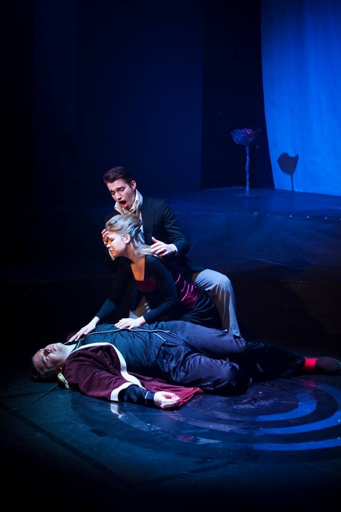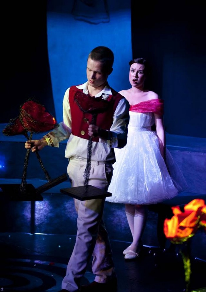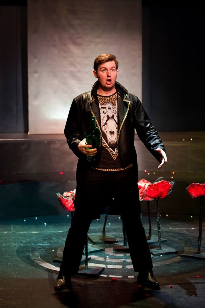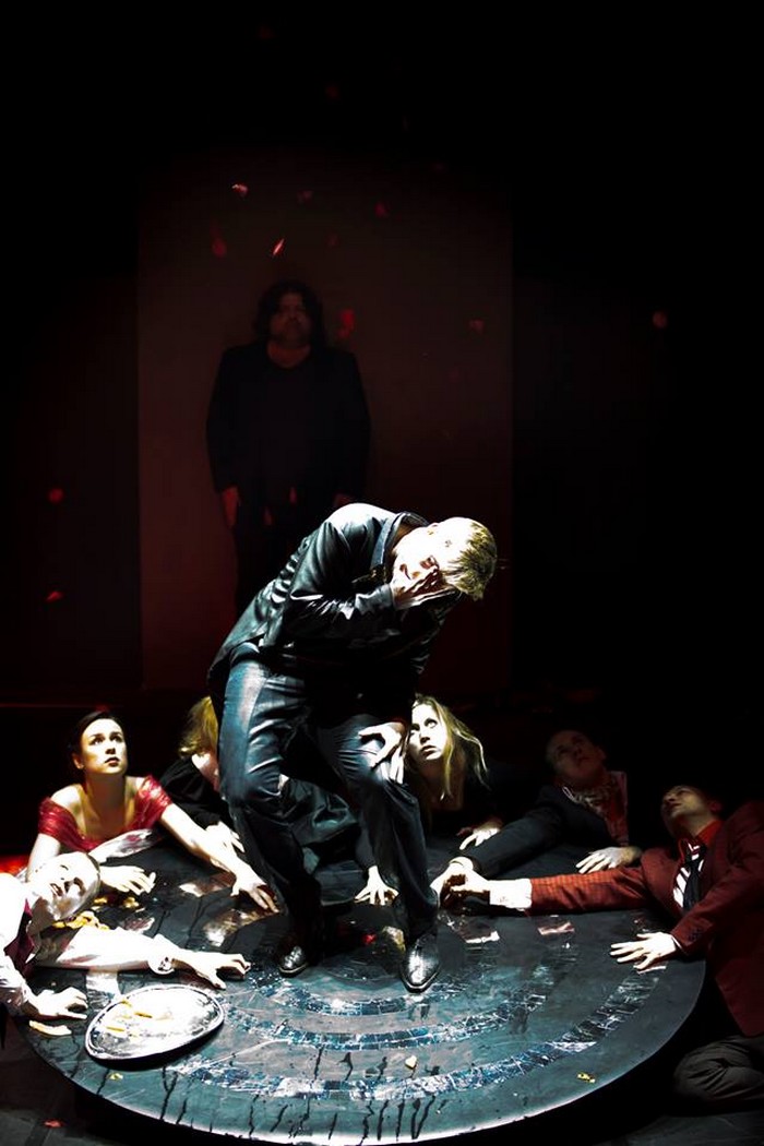 Na jevišti manipulují postavy s mnoha „vlčími máky“, spíše s nepříliš povedenými rudými květy velikosti a tvaru stolní lampy s kalichem obráceným vzhůru. Tyto dílčí etudy se opakovaly dosti stereotypně a nemohla bych tvrdit, že by mi akce s nimi pomohly v orientaci. Giovanni se vysmívá všemu a všem, u ostatních mi jejich vztah k Giovannimu i k sobě navzájem nepřipadal příliš sdělný. Na hřbitově komunikuje Don Giovanni s „živým“ Komturem, který vleže na zešikmeném kulatém terči opravdu kývá hlavou a posléze otočen čelem k divákům tvoří svým tělem jídelní tabuli, ze které Giovanni nezřízeně pojídá lahůdky. Režijní nápad vítaný a neotřelý. Finále – znovu přítomná stříbrná ruka přitáhne Dona Giovanniho s pomocí Komturovou do již zničené společnosti všech jeho předešlých protihráčů. Pohřbít všechny postavy od Elvíry po Zerlinu do pekla (možná, že i Komtur je jeho součástí – ale jakou závislostí že trpí on? Láskou k dceři?) to patrně nebyl příliš dobrý nápad, protože si jej režisér akcemi dostatečně nepřipravil. Čím je v tomto případě Don Giovanni výjimečný? Honíme-li mnoho zajíců najednou, vždycky se nám rozutečou. Nebylo by lépe snažit se spíše propracovat postavy a dramatické situace tak, aby byly skutečnou součástí režisérovy koncepce a nevznášely se ve vzduchoprázdnu? Sebešikovnější student by se měl ve škole naučit trošku toho řemesla, aby nebyl nebezpečný sám sobě, své schopnosti co nejjasněji vyjádřit své záměry. V tom případě mu totiž zúčastnění operní herci pomohou, někdy dobrovolně a jindy třeba i proti své vůli.