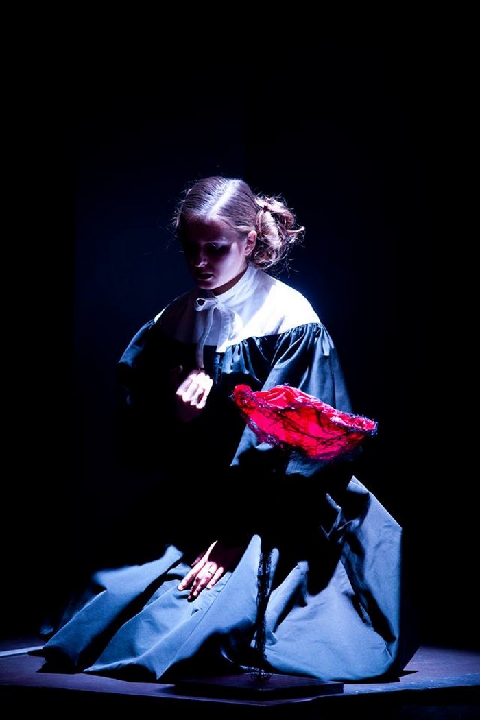 Inscenace měla slibný začátek – všichni účinkující se při předehře vztahují k působivé trojrozměrné ruce z jemného stříbřitého drátu a na konci opery pod toutéž rukou hromadně kolabují. Patrně ruka někoho, kdo řídí nebo by rád řídil jejich kroky – ať už je to ruka Boží nebo třeba ruka Velkého bratra. Scénografii tvoří především dvoustupňové průsvitné schodiště tvaru písmene U, které umožňovalo výrazné barevné svícení (světelný design byl absolventským výkonem Martina Holoubka, studenta DIFA JAMU). Uprostřed je umístěna kruhová plocha, která je vychýlitelná a otočná.