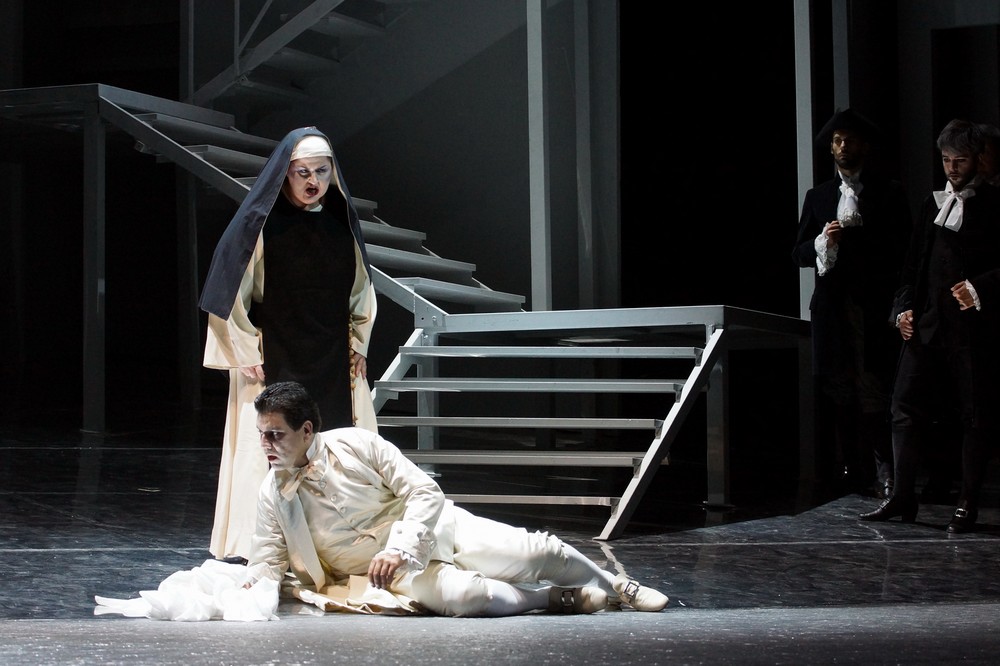 Hoci možno do hororovej témy by zapadla. Maria de Rudenz, „dramma tragico in tre parti“ na libreto Salvatora Cammarana spadá do začiatku tretej, záverečnej fázy Donizettiho štvrťstoročnej tvorivej činnosti. V živote to nemal ľahké. Nielen detstvom v skromných podmienkach na bergamskej uličke Borgo Canale (rodný dom s malým múzeom je sprístupnený) a nielen vážnym ochorením na sklonku života. Skôr než napísal Mariu de Rudenz – posledný opus pre benátske Teatro La Fenice – v priebehu dvoch rokov prišiel o rodičov, manželku i druhú dcéru. Tri mesiace pred prvým benátskym uvedením Marie de Rudenz uzavrel neapolskou premiérou Roberta Devereux tak zvanú tudorovskú trilógiu. Tento raz mu libretista Cammarano ponúkol text, spracúvajúci parížsku predlohu. Morbídnu La nonne sanglatne od súdobých autorov Aniceta Bourgeoisa a Juliena de Malliana. V nej štyri hlavné postavy umierajú s hrozný požiar pohltí všetky stopy. Donizettiho opera je však o čosi zmierlivejšia. Hoci tri mŕtvoly a v predloženom výklade psychicky zruinovaný hlavný hrdina sú tiež hodné pikantného hororu.