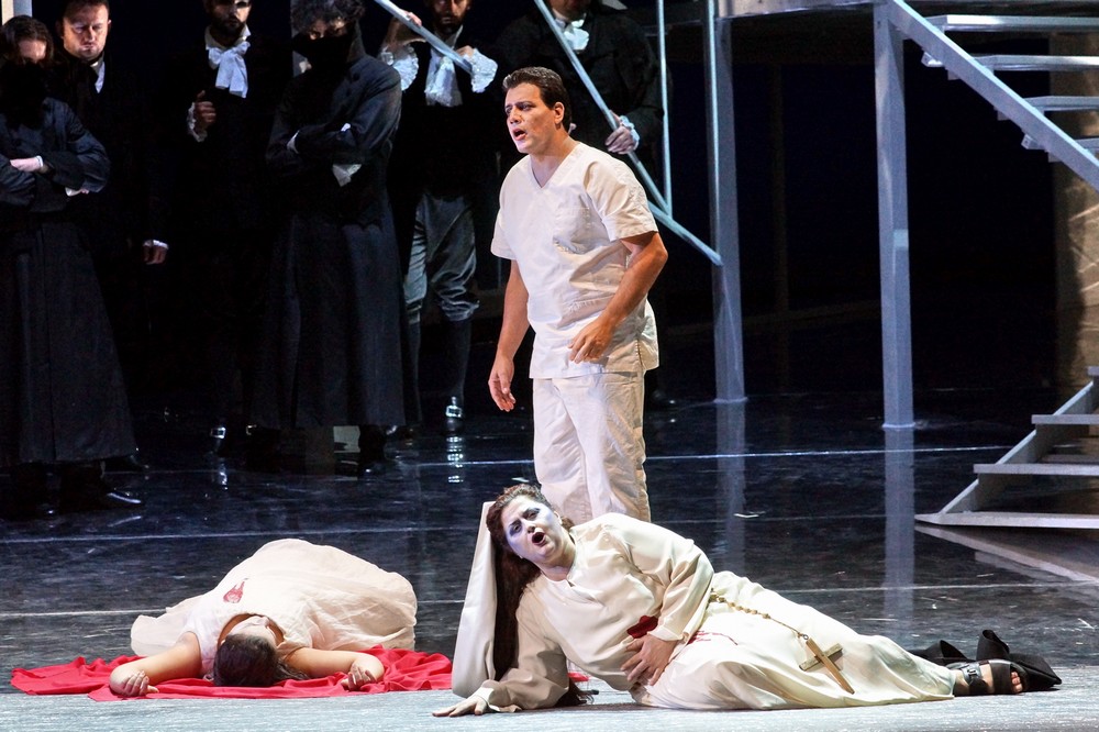 Keď sa nečakane pred uvítacím potleskom pre dirigenta zjaví na proscéniu ktosi z vedenia inštitúcie, spravidla to neveští nič dobrého. Jóbova zvesť v Bergame zaznela. Nešlo však o ohlásenie speváckej indispozície, ale o poďakovanie predstaviteľovi hlavnej tenorovej postavy Ivanovi Magrimu, že napriek vážnemu úrazu na generálke bol pripravený odspievať obe predstavenia na invalidnom vozíku. Žiaľ, realita. Nie čoraz častejšie podsúvaná režisérska barlička.