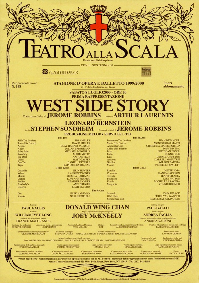 Ačkoliv se jedná o muzikál, otevřely se Bernsteinovu, Sondheimuvu, Robbinsovu a Laurentsovu dítěti poměrně záhy dveře operních domů. Všimněme si však okamžiku, kdy dobylo ten nejslavnější: milánskou Scalu. Stalo se tak v sezóně 1999/2000 a pod autorskou čtveřicí se tehdy na plakátech objevila další dvě důležitá jména. První patřilo renomovanému znalci klasických broadwayských muzikálů a uznávanému dirigentu Donaldu Chanovi. Ten stál za stylově přesným a autentickým hudebním nastudováním. Odkaz tou dobou nedávno zesnulého Jeroma Robbinse pak převzal jeho žák a tanečník z jeho pozdních projektů, režisér a choreograf Joey McKneely. Oba tvůrci spolu vytvořili do té míry úctyhodný a zároveň originál ctící celek, že se jejich pojetí stalo pro další špičkovou provozovací praxi v jednadvacátém století v podstatě závazným. S úspěchem se tedy následně objevilo například v pařížském Théatre du Chatelet nebo v Sadler’s Wells Theatre v Londýně. Slavným se stal také návrat West Side Story na Broadway v roce 2009; Mc Kneelyho choreografie doplnila režijní zpracování ctihodného veterána Arthura Laurentse. Pro zajímavost je k této produkci ještě třeba uvést, že další z autorů West Side Story, Stephen Sondheim, dal pro tuto příležitost svolení k přeložení některých svých textů do španělštiny. Konflikt bělošského gangu Tryskáčů a portorikánských Žraloků se tak na jevišti vyhrotil ještě výrazněji…+++