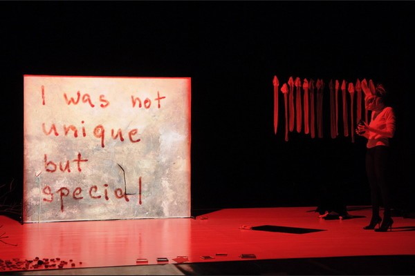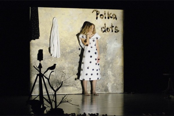 Krásny je obraz ležiacej nahej protagonistky odetej (či skôr zamotanej) len do podväzkov a horizontálne ležiacej chrbtom k publiku na otáčavej stoličke (ktorou je nahradená sofa z fotografie). Výjav má až desivú smrteľnú silu. Nechýba ani známa fotka Polka Dots, kde sa herečka ocitá v bielych šatách pri stene a bodky na ňu „doplní“ – premietne – projektor. Projekcia s útržkami myšlienok Francesky Woodmanovej dopovedá emóciu, vnútorné prežívanie fotografky a zároveň slúži ako výtvarný fenomén v celej výraznej komplexnosti divadla, odkazuje aj na video tvorbu autorky, avšak rozhodne predovšetkým na jej vnútorný svet a psychické rozpoloženie : „ Call me, as soon as you can, I m anxiously awaiting your reply. Call, collect 401 274 418. I ´m hoping“. Táto výzva s konkrétnym telefónnym číslom je evidentne nástojčivá, zúfalá a volajúca po záchrane. „I could not longer play...“ je tiež hrozivo výpovedné.+++===Komplex výtvarného spracovania, hudobný sprievod, dômyselné choreografické „kreslenie“ pohybu a mimoriadne dôstojná, prirodzená, akoby mimovoľná a zároveň maximálne sústredená interpretácia charizmatickej protagonistky, sformulovali divadelný obraz (i odkaz) z Woodmanovej tvorby. Z fotiek vychádzajú, oživujú ich a obohacujú o divadelný rozmer. Tvorcom sa podarilo vniesť do performance melanchóliu i napätie, estetiku i „zvrátenosť“ myslenia, preciťovania, vnútorného i vonkajšieho fungovania i všadeprítomného mŕtveho ducha Woodmanovej diel. Francesca Woodmanová akoby si nafotila svoje vlastné umieranie, aby ho definitívne ukončila skokom do prázdna a do večnosti.
