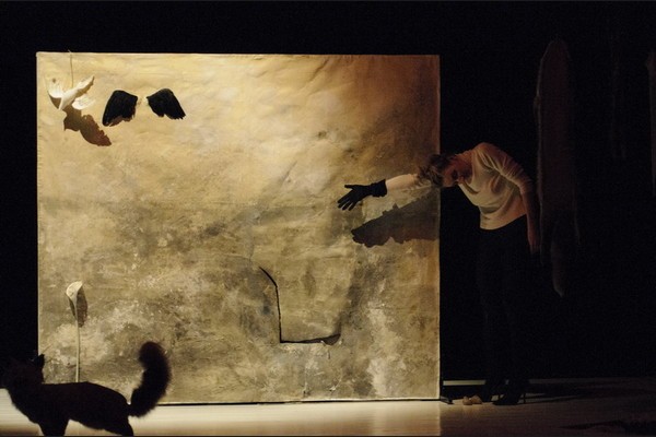 Vizuál dofarbuje hudba zložená zo zvukov, gongov, vŕzgania, šumov, chvejivých monotónnych, ale aj melodických vstupov plných nostalgie a melanchólie. Intimitu diania a umlekyninej tvorivej samoty umocňujú aj malé súkromné gestá, ako je privoniavanie k textíliám-šatám, vdychovanie vône starých čipkovaných rukavičiek, ženské naťahovanie siloniek s tichým uvedomením si fyzična, vlastnej sexuality, možno príťažlivosti, hravé poskakovanie zajačika, alebo plazenie sa s líškou…to všetko je akási vnútorná kreatívna hra vážnej fotografky. Tak, ako vo fotografiách, aj na scéne performerka sleduje a kopíruje symboly – pripichnuté havranie krídla, ale aj krídla anjela, či bielej holubice – symboly podvedomej (tušenej) smrti, naskytne sa i obraz kľačiacej nad plochou zrkadla, alebo „rozmazané“ výjavy spôsobené rýchlym pohybov vlasov i tela, sledované cez zavesený rám obrazu (zrkadla). Zaujme zavesená kompozícia pančúch na šnúre – akéhosi princípu femínnej existencie, ženského tajomstva i prádlovej reality, či ľahko zvrhlej provokácie až po prienik tela stenou, alebo trčiaca noha zo steny.
