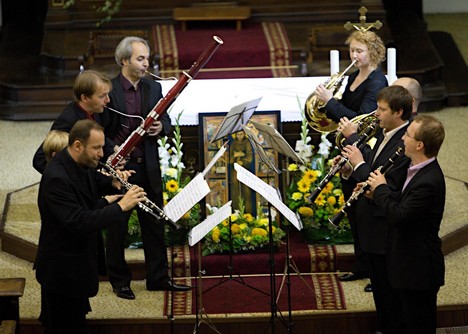 Další komorní koncert v podání dechového souboru PhilHarmonia Octet proběhl ve středu 1. října v kostele Zvěstování Páně. Silné umělecké renomé tohoto ansámblu je dáno vynikajícími hráči České filharmonie a předními českými sólisty jako jsou Vilém Veverka (umělecký vedoucí) a Monika Boušková (hoboje), Karel Dohnal a Irvin Venyš (klarinety), Ondřej Vrabec a Adéla Triebeneklová (lesní rohy), Václav Vonášek a Martin Petrák (fagoty). Svůj program pojali ve třech skladbách, kde převažovali především klasicistní autoři, vždyť vrcholný klasicismus přál oblibě dechových harmonií. Radostná až bezstarostná Partita Es dur Františka Vincence Kramáře upoutala posluchače líbeznou souhrou všech nástrojů, kde občas prosvítala hobojová sólová místa uměleckého vedoucího. Následoval skok do dvacátého století a také ponor do sonorní hudby estonského skladatele Arvo Pärta, do téměř meditativní, duchovní skladby Fratres. Její variující rytmicko-melodický model byl obohacen ještě o bicí nástroj (dřívka) Jana Kučery. Dynamické vyvíjení a celkové proplétání jednotlivých nástrojů dokázalo udržet posluchače v napjaté pozornosti. Perličkou na závěr byla Serenáda c moll, KV 388 Wolfganga Amadea Mozarta. Tato skladba se řadí ke skladatelově vrcholnému období a přinesla několik interpretačních a hudebních pozoruhodností v podobě synkopických rytmů, či brilantně zahraných fagotových pasáží. PhilHarmonia Octet přinesla do festivalového dění svěží a umělecky vysoce hodnotný výkon.