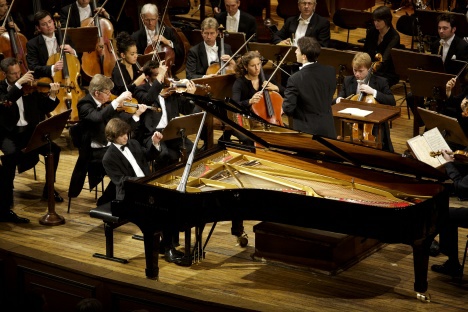 A pak přišel v pátek znovu VIP závěrečný koncert Dvořákovy Prahy s mnoha čestnými hosty, večerními róbami a vůbec publikem, které člověk běžně na koncertech nepotkává. Jeho hvězdou byl Rafal Blechacz, který zahrál Schumannův Klavírní koncert a přidal jednu Chopinovu Mazurku. Obojí s krásnou jemností a smyslem pro drobné detaily. Skvělá technika mu dovoluje si sofistikovaně pohrát s každou frází – a právě tím asi byla jeho interpretace charakteristická. Snad časem nebude té sofistikovanosti víc než toho citu.
