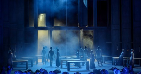 Ak mal režisér s prenesením inscenácie menej práce, ohromnú prácu odviedli dvaja guru hudobného naštudovania. Dirigent Jakub Klecker a skutočne to možno napísať, legendárny zbormajster Jozef Pančík. Umiestnenie zboru na balkóne, navyše celou sálou rozdeleného na mužské a ženské hlasy, dolu na scéne detský zbor či externý zbor, priniesli úchvatné zvukové zážitky. Umiestnenie zboru, ktorý je komentátorom mnohého diania do hľadiska, zdôrazňuje ľudový charakter tohto divadla či sledovanie posvätného rituálu a dodáva vzrušujúcu interakciu, keď zbor akoby verejne prednášal myšlienky divákov a adresoval ich scéne. Pančík vypointoval každé slovo, telesu je dokonale rozumieť, vypracoval každú frázu, ktorá sa nezlieva a je možné ju sledovať v bachovsky dokonalom kontrapunkte. Nádherné farby jednotlivých typov hlasov, krásny tón sopránov, či sonórny zvuk basov. Klecker pomáha sólistom tým ako ich vedie a ako vedie orchester. Nádherné zvukové bohatstvo, nechanie priestoru všetko vyspievať, nič neprekrývať, nehnať sa dopredu. Kryštálové zvuky klavíra, huslí, dokonale posadené dychy. Úžasný zážitok. Zbor potvrdil po rokoch strádania v pochybných inscenáciách opäť svoj vysoký nielen spevácky, ten má vždy, ale aj javiskový kumšt. Tak, ako keď pri režijnom pulte stál Pountney pri Její pastorkyni, Gréckych pašiách, či Inga Levant u Borisa Godunova. Ohromné nasadenie k hereckému konaniu, tancu, vnútorný náboj a k tomu vokálne majstrovstvo vlastne dokázali, čo je na opere ako divadelno-hudobnom žánri to prekrásne.