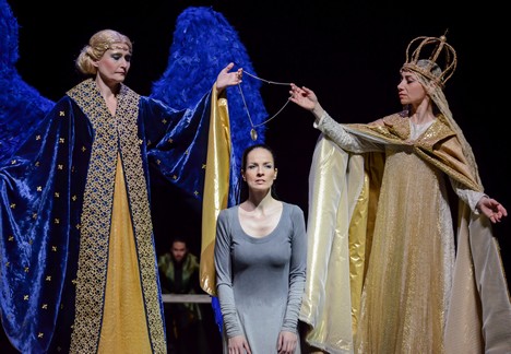 Pavla Vykopalová, ktorej často mnohí vyčítajú chlad či akýsi nesúlad so svojimi postavami, je úchvatná. Je presným typom silne veriacej osoby, ktorá vo svojej viere podlieha záhadnej pýche, ktorú týmto svätým dušiam podsúva diabol. Jej narastajúce napätie, kŕčovité držanie tela, uhrančivé gestá či iskriace oči sú dokonalé rovnako, ako jej nekonečné frázy, kedy nemusí dýchať a s dokonalou farbou zaspieva ohromné pomalé oblúky, ktoré Martinů predpisuje. Jej posadnutosť výnimočnosťou, že ako osoba duchovná má právo poznať Boha ju vedie až k démonickej istote vyžiadať si a dočkať sa znamenia. Samozrejme Boh mlčí tak ako vždy a tieto línie podporené herectvom a prežitkom Vykopalovej dávajú jasné zdôvodnenie, prečo až agresívne strháva zo seba sväté rúcho, pošliape rehoľné sľuby a zmizne z kláštora. Fantastická herecká štúdia od speváčky, tak ako aj jej dokonale zaspievané, extrémne náročné tri árie. Nočná scéna v cele, ária A před rájem a slávna modlitba Ach Bože můj všemohoucí, ktorá nádherným tembrom, piánami a prežitkom je nespochybniteľná.Daniela Straková-Šedrlová, ktorej osudom je asi stále stáť v tieni, napríklad pred rokmi jej dokonalá Margaréta v Boitovom Mefistofelovi, či Alžbeta v Don Carlosovi, je celkom iná. Je oveľa asketickejšia, ľudskejšia, odovzdaná. Mučivý sen, ktorý pochádza od diabla narušuje jej harmóniu. Straková-Šedrlová veľmi osobito pracuje s gestom, ktoré vychádza z jej vnútornej výpovede. Oproti Vykopalovej je celkom inou osobou. Otázky Matke Božej nekladie rúhavo,ale pokorne, aj kláštorný odev odkladá skôr s bolesťou a smútkom, než vzburou voči Bohu. O to vrúcnejšia je v svetskej krajine, akoby jej ženská láska vykvitla. Od chvíle čo diabol rozhlásil jej obvinenie, je bojovná a dramatickejšia. Aj v závere, keď sa jej sen končí, jej človečenstvo opäť dosahuje inú výrazovú kvalitu. Jej hlas je iný, ako jej alternantky. Široká farebnosť a dramatický taliansky nerv je v ňom výrazne prítomný. Od technicky vedeného piána po sugestívne forte vo vysokých tónoch tak, ako v psychologickom profilovaní aj vo vokálnej línii buduje Zeyerovskú postavu. Vykopalová je skôr hrdinka Dostojevského, ukrutná racionalistka, ktorej dôkazy existencie Boha zlyhávajú v duchu hesla; Boh sa pyšným protiví. Šedrlová-Straková je bližšia literárnej predlohe a duchu evanjelia. Keď stojí na popravisku, jej gesto je v duchu; kto z vás je bez viny, nech hodí kameňom. Dva veľké výkony, dve silné osobnosti v geniálnej opere!