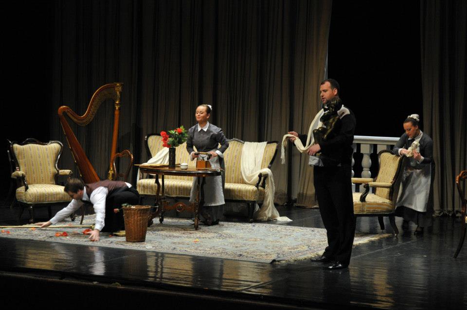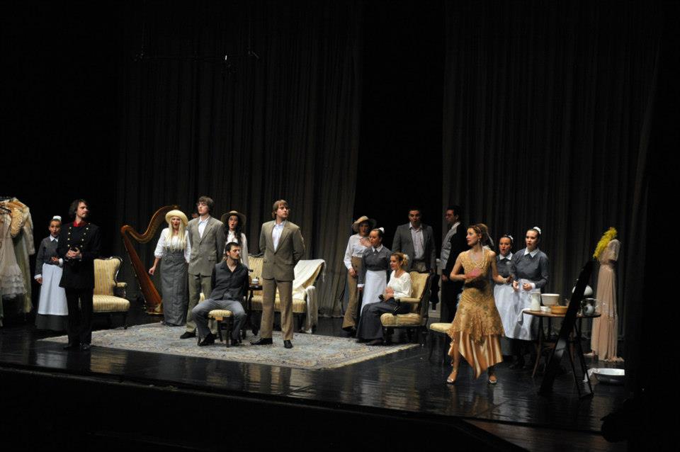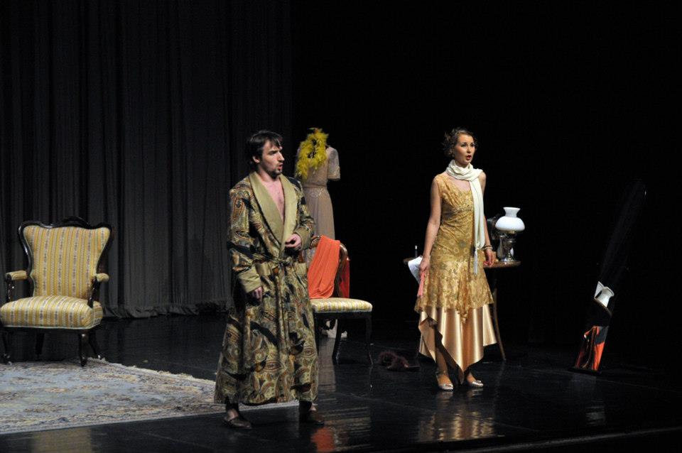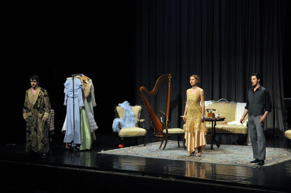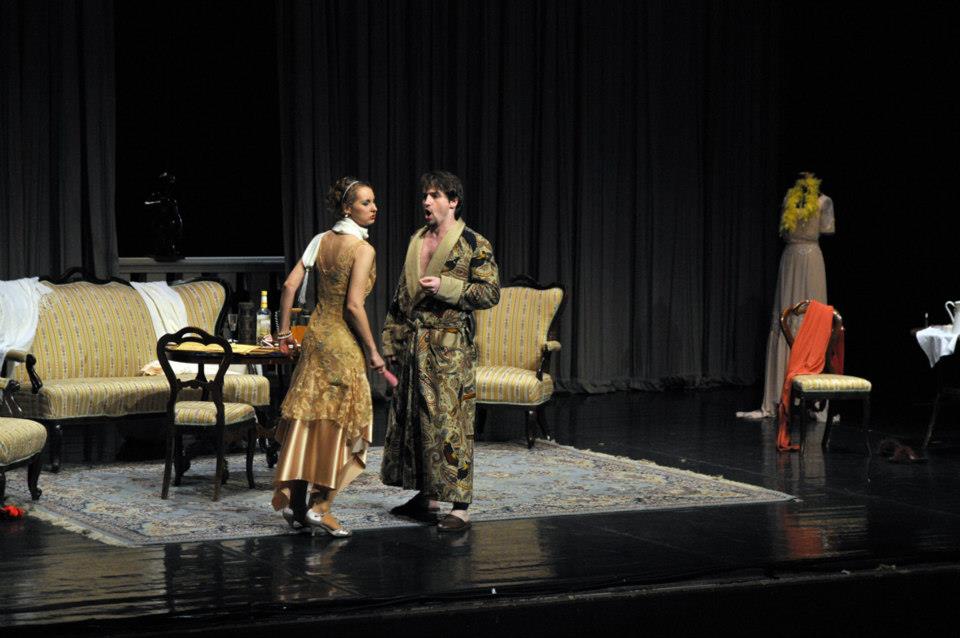 Na záver akademického roka 2012/2013 vymysleli pedagógovia so študentmi originálny projekt. Odvážne siahli za hranice ošúchaného repertoáru a vybrali si dva krátke tituly z pier Wolfganga Amadea Mozarta a Gian-Carla Menottiho. Dvadsaťminútový fragment z plánovanej no neuskutočnenej opery Lo sposo deluso (Oklamaný ženích) obsahuje vrátane predohry len päť čísel. Dve árie, kvarteto a terceto. Dej tu prakticky nejestvuje. Naopak, bezmála hodinová komická opera Amelia al ballo (Amélia ide na bál) je kompaktnou buffou, pretkanou dramatickými akciami, s výborne prepojeným hudobným a textovým materiálom. O taliansko-americkom skladateľovi, ktorý najmä prostredníctvom drámy Konzul (Opera SND, 1966), ale aj opier Stará panna a zlodej (Banská Bystrica, 1967) a Médium (SND, 1976) nie je slovenskému publiku celkom neznámy, sa viedli počas jeho dlhého života vášnivé diskusie. Paušalizovaným názorom, ktorý si osvojili aj klasici českej a slovenskej muzikológie Anna Hostomská („obratne, avšak eklekticky využíva emocionálne pôsobivý pucciniovský verizmus“) či Zdenko Nováček, mu bolo pripisované najmä postavenie Pucciniho epigóna. Naštudovanie na bratislavskej VŠMU poňalo dve autonómne diela svojráznym, avšak do detailov premysleným spôsobom. Režisér Tomáš Surý ich naservíroval ako „dve v jednom“. Navonok teda akoby Menotti pohltil Mozarta, ten však pritom neostal ukrátený ani o notu, ba ani o náznaky charakterov svojich postavičiek. Hneď počas predohry k Oklamanému ženíchovi sa ocitáme v luxusnom salóne rozmarnej mladej paničky Amélie, ktorá sa oddáva ľúbostnej hre s milencom. Nasledujúce kvarteto má svoju dynamiku v upratovaní domácnosti a aj ďalšie dve mozartovské scény, hoci dejovo tiež slúžia Menottimu, v paralelnej niti roztáčajú mozartovský špásik. Režisér Tomáš Surý si tak nastavil dvadsaťminútové predpolie k samotnej ťažiskovej opere. Keď zaznejú jej prvé takty, divák už vie o predhistórii Menottiho postáv takmer všetko – na podklade Mozartovej hudby. A čuduj sa svete, ani jej to vôbec neublížilo.