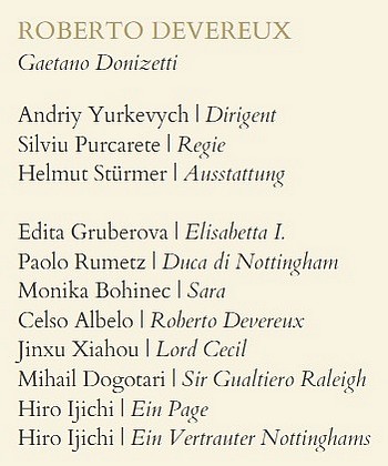 Dnes Gruberová ve Vídni svoji Elisabettu zpívá už po osmadvacáté, naplánována jsou ještě dvě představení, na příští pondělí a ještě pátek. Tady je dnešní kompletní obsazení: