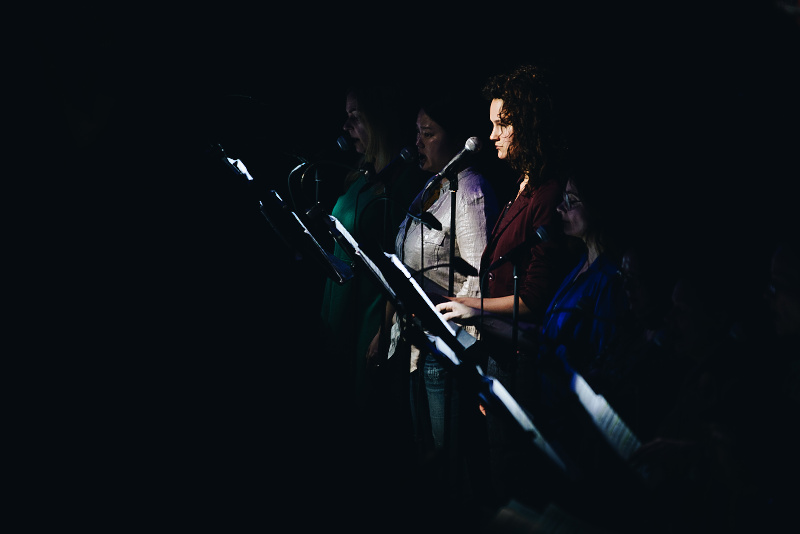 Ačkoliv se obsazení jednotlivých částí opery proměňuje, stále její provedení představuje enormní zátěž pro interprety. Těmi v tomto případě byli členové souborů Collegium Vocale Gent a Ictus Ensemble. Vzhledem k délce provedení se podle potřeby vzdalovali, posedávali na okolních židlích a opětovně vstupovali do hry. Celý večer řídili dva dirigenti, Georges-Elie Octors a Tom De Cock. Někdy společně (jeden taktoval doby, druhý ukazoval jen změny a nástupy nástrojů), někdy jen jeden z nich.