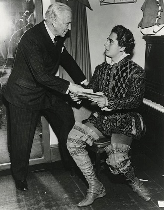 Giuseppe Di Stefano debutoval v Amerike ako Vojvoda v Rigolettovi. Na snímke s vtedajším generálnym riaditeľom Met Edwardom Johnsonom (zdroj metoperafamily.org / foto Louis Mélançon)