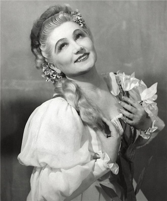 Maria Tauberová jako Gilda ve Verdiho Rigolettovi – Národní divadlo 1954 (zdroj archiv Národního divadla / foto Jaromír Svoboda)