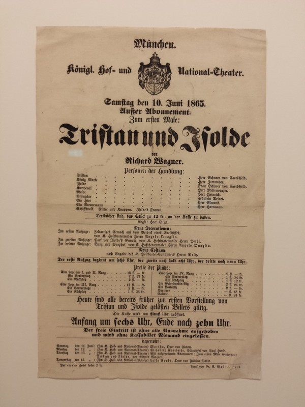 Cedule k prvnímu uvedení Tristana a Isoldy (Mnichov, 1865)