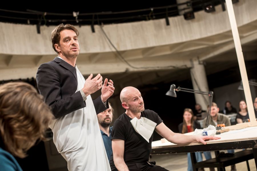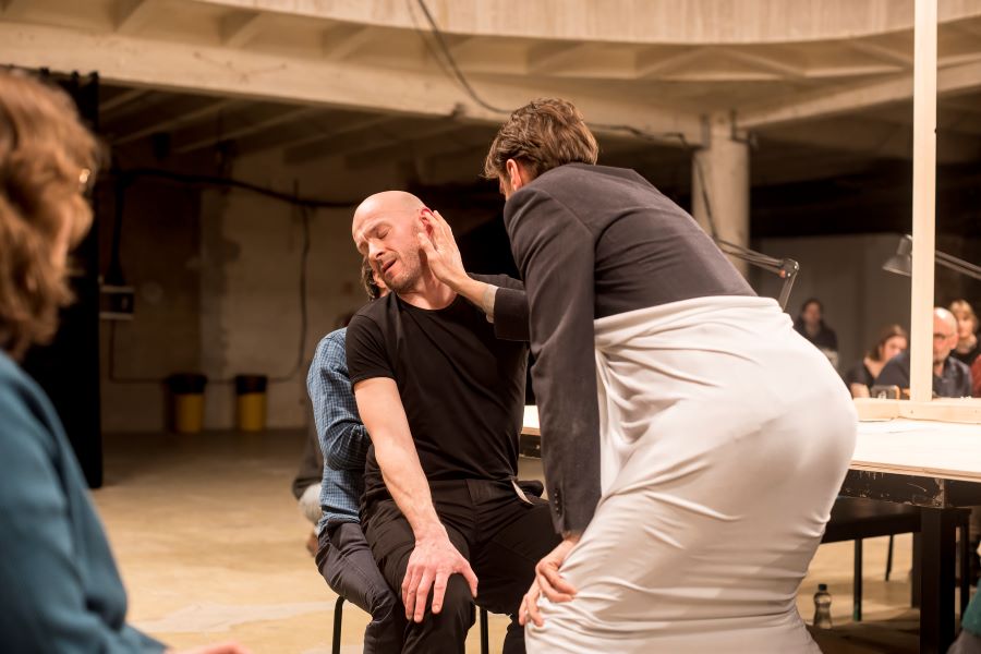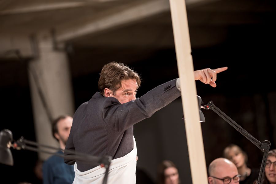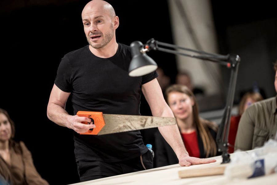 Nejen ze sobotní programové nabídky, ale celkově z dramaturgie 9. ročníku festivalu Bazaar velmi rezonoval Workshop. Projekt tří bývalých členů legendárního estonského divadla NO99 – Eero Epner, společně s Martem Kangrem a Juhanem Ulfsakem podtrhli letošní téma péče a vtáhli publikum do světa, v němž se pečuje, a hlavně se starostlivostí radí, jak pečovat o lidi, předměty a také sebe. Performance Workshop totiž pojednávala ne o tom „dívejte se, jak vyrábíme nebo udělej si sám“, ale o „řeknu ti a ukážu jak na to, abys to sám zvládl“. Recesí nahuštěné dvě hodiny v prostoru, jehož střed zaplnil obrovský dřevěný stůl připomínající dílenský ponk nebo výtvarný ateliér, umně gradovaly absurdní návody alias „zlepšováky“.