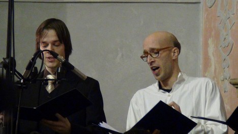 Koncert byl zahájen provedením skladby Tomáše Hanzlíka In exitu Israel de Aegypto. Jak prozradil autor v programu koncertu, byla tato skladba v zásuvce od roku 1993 poněkud pozapomenuta. Nicméně „její inspirací bylo první setkání s fascinujícím hlasovým projevem – když muži zpívají vysokými hlasy“. A tak tato kompozice konečně po devatenácti letech spatřila světlo světa a pro zcela naplněnou Kapli Božího Těla to byl překvapivý zážitek. Tomáš Hanzlík využívá například zvuku saxofonu, který je při troše fantazie zvukově připomíná barokní hoboj, takže spojením smyčcové i dechové sekce vzniklo pozoruhodné dílo vracející posluchače hluboko do historie. Závěrečné části 7.-10. byly provedeny v podání polského kontratenoristy Piotra Olecha, po nich následoval cyklus scén pro smyčce a kontratenor, jehož inspirací jsou tři stylizovaná hudební gesta, která symbolizují afekty hněvu (1. Tandem caput metam morti), žalu (2. Cor meum) a radosti (3. O grande cordis solamen), a to v interpretaci německého kontratenoristy Steva Wächtera. Jejich dramatičtější ráz dal dostatečný prostor intepretovi k barvitému podání a pozoruhodným uchu lahodícím přechodům k prsním rejstříkům. Přestože je mnohdy kontratenorový zpěv barevně srovnatelný s mezzosopránovou či altovou ženskou polohou, jsou to právě tyto přechody a pro ženy technicky náročné pasáže, které posluchače nenechají na pochybách, že se jedná o mužský hlas. V tomto směru byl hlavně výkon Steva Wächtera během večera jedinečný.Druhá část koncertu byla zahájena Hanzlíkovou skladbou Precatio v podání nejmladšího včerejšího protagonisty Stefana Kunatha. Původně altová árie je vlastně vnitřním „týrajícím hlasem rozpolcené postavy, rozpolcené na tenor a alt“. Další opravdu překvapivý zvukový zážitek přinesla skladba Pinnas columbae. „Je remixem tří zlomků z Žalmů a hudebních symbolů. Východiskem byl verš Abyssus abyssum vocat .(…) Na něj pak navazují dva další fragmenty, Pinnas columbae a Exaudi me, které spolu vytvářejí triádu – propast, unikání a osvícení. Ta odkazuje jak k Žalmům 41, 54 a 12 Vulgaty, tak k remixování jejich významů. Posuny spojením.“ Provedena byla českým kontratenoristou Janem Mikuškem, který nejen zpíval, ale dokonce se i doprovázel na cimbál. Velice překvapivě zvukomalebně přitom znělo „brnkání“ na cimbálové struny připomínající zvuky nějakého zvláštního loutnového, nebo kytarového nástroje. Udivuje mě fantazie autora, který si je dokázal představit a takto jedinečně pak využít. Jan Mikušek tedy kromě vynikajícího pěveckého výkonu doslova šokoval i svou cimbálovou virtuositou. Není divu, že tato skladba již slavila úspěch na soutěži Nuberg 2010, kde získala Cenu veřejnosti.