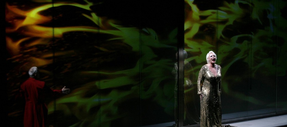 Podobne sa v prvý večer zaskvel Alberich Hartmuta Welkera, keď sa hlasovo prepracoval od odpudivého, „kuňkajúceho“ Alpa, zbierajúceho posmech vodných víl až k terorizujúcemu, bezohľadnému vládcovi Nibelheimu. Do tretice všetko najlepšie – Christian Franz sa uviedol v Zlate Rýna ako Loge, sarkasticky to komentujúci dianie vo svete bohov, so znelým, plným, stopercentne intonujúcim hlasom, ktorý sa dokáže presadiť proti orchestru ako sa na dramatický tenor patrí. V Siegmundovi vytvoril predovšetkým hlasovo široký diapazón výrazov od psanca hľadajúceho v najvyššej núdzi otcov meč (tie sýte, pevne opreté korony vo Wälse!!) cez mäkký, vrúcny prejav v milostnom duete so Sieglindou až po odhodlanosť vzdorovať Brünhilde. Tretiu veľkú rolu utvoril ešte ako Siegfried v Súmraku bohov; zaujímavé bolo, ako hlasovo oddiferencoval seba-Siegfrieda od seba-Gunthera. Je veľká škoda, že sme, vzhľadom na štvordňové prevedenie celého Ringu nemali možnosť počuť jeho Siegfrieda v tretej časti cyklu. Obsadenie Jay Hunter Morrisa do tejto roly považujem za omyl. Okrem toho, že jeho hlas je ľahký, typovo pre Siegfrieda nevhodný, neschopný presadiť sa (na rozdiel od všetkých ostatných účinkujúcich) proti mase orchestra, nezaujal ma ani materiálom ako takým – plochý, nosovo zastretý, bezfarebný hlas, vo výškach len málokedy otvorený, dolné polohy boli v záujme zachovania akej-takej znelosti nepríjemne tlačené. Samozrejme, ani part Brünhildy nebolo možné obsadiť pre všetky večery jedinou speváčkou. Práve Morrisovou partnerkou sa stala Petra Lang. Nech už je táto interpretka akokoľvek dobre zapísaná vo wagnerovskom svete, Brünhilda jej tessiture hlasu veľmi nesvedčila a najvyššie polohy boli na hranici počúvateľnosti. A tak sme počuli len jednu skutočnú Brünhildu. Napriek určitému manku v znelosti dolných polôh bola Irene Theorin tou pravou Valkýrou, predovšetkým v Súmraku bohov. Pevným, kovovo lesklým, dychovo perfektne ukotveným hlasom vytvorila jedinečnú heroinu, suverénne prechádzajúcu od výbuchov zúrivosti po ohlušujúce piána v záverečnej scéne.