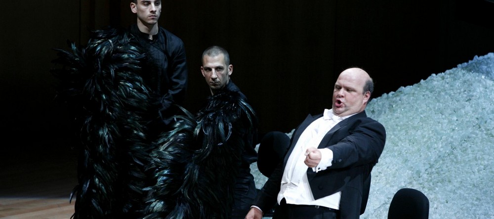 Súmrak bohov je už plne v réžii hudby. Dianie u Gibichungov nie je ničím zvláštne, až do chvíle, v ktorej sa medzi Hagenom, Brünnhildou a Guntherom rozhodne o Siegfriedovej smrti. V tom momente sa na skle zjavujú tie isté krvavé runy ako pri Alberichovej kliatbe. Emočne pôsobivý je výstup medzi Brünnhildou a Gutrunou po skone hrdinu – namiesto žiarlivého výstupu dvoch podvedených žien sme svedkami tichého porozumenia po odhalení toho, kto bol ich ozajstným sokom.