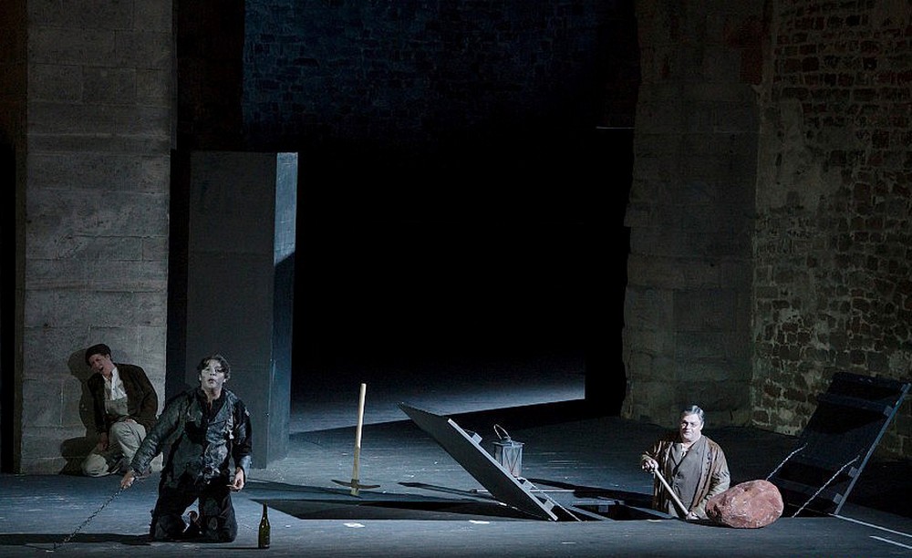Po brilantní předehře uvedené svižnými tóny se na pravé straně scény, znázorňující stolem a židlemi skromné obydlí žalářníka Rocca, objevují jeho dcera Marzelline a její nápadník Jaquino. Výborně se pěvecky i herecky uvádějí jejich velmi mladí představitelé Kathleen Ziegner (byla letos na zdejším festivalu odměněna cenou Orfea, udělovanou mladým nadějným pěvcům) a Polák Maciej Kwaśnikowski. Zvláště mladičká Marzelline při své árii uchvacuje nejen krásným a velmi znělým sopránem, ale i příkladným frázováním a nádhernou dikcí při mluvených dialozích, kterých je ostatně v opeře hodně.