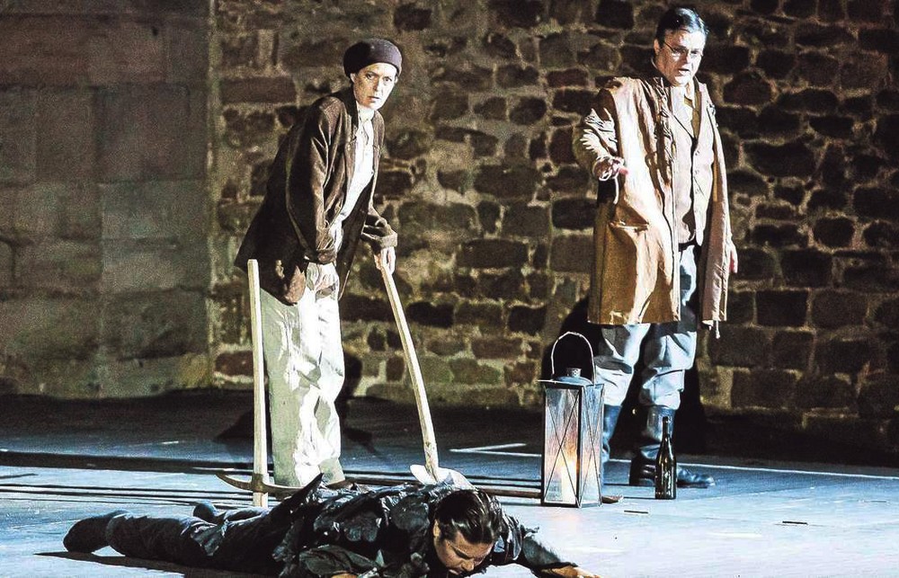 V další scéně se ocitáme v pomyslné Florestanově kobce, kde je vězeň před kamenným sloupem přikován k podlaze jeviště. Byl jsem velmi zvědav na výkon holandského tenora Antona Sarise, který má za sebou více než patnáctiletou pěveckou kariéru třeba v rolích jako Lohengrin nebo Rienzi. Florestan zpívání moc nemá, ale jeho úvodní slavná árie ,,Gott! Welch Dunkel hier…“ je velkou a náročnou zkouškou i pro velmi zkušené pěvce. Náš Holanďan však příliš přesvědčivý nebyl. Přichází Rocco s Fideliem, aby vykopali hrob (opět klasické vyndávání těžkého kašírovaného balvanu). Florestan se probouzí a Fidelio-Leonora mu nabízí vodu a chléb. Jímavé Florestanovo poděkování ,,O Dank dir, Dank…“ však vyšlo pěvci procítěně a pěkně. Dramatická scéna Pizzarrova pokusu zabít Florestana a jeho záchrana Leonorou byla podána standardně, závěrečný duet Leonory a Florestana byl zazpíván docela dobře a vyzněl ve prospěch pěvkyně. V posledním obraze před vězením se představil ministr Don Fernando v dobrém podání poměrně známého barytona Martina Kronthalera. Závěrečná oslavná scéna pak působila díky početnému sboru velkolepě. Samozřejmě také kvůli geniální Beethovenově hudbě. Mohutný a dlouhodobý aplaus odměnil všechny účinkující. Úroveň zdejších představení odpovídá poslání tohoto festivalu a nelze samozřejmě měřit se scénami první velikosti. Ale hlavně, že publikum bylo spokojeno a odnášelo si domů hezký zážitek. +++