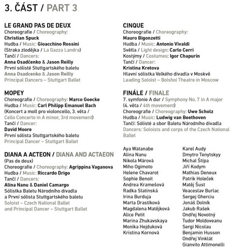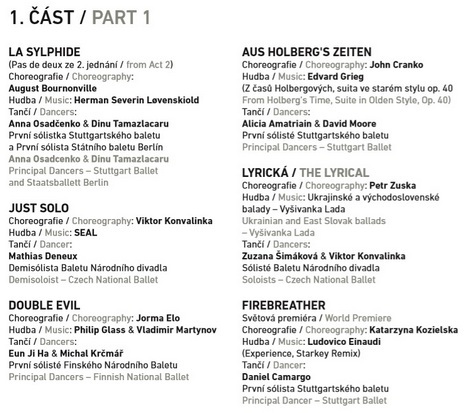 Budoucí šéf Baletu Národního divadla Filip Barankiewicz, který Petra Zusku na jeho postu vystřídá od přespříští sezony, se rozhodl nastínit svou uměleckou vizi a směřování souboru. A tak vzniklo slavnostní představení Dance Gala, které se odehraje už tuto neděli 21. června v pražské Státní opeře.V téměř tříhodinovém programu, slibujícím výběr z klasických i moderních děl a degustaci špičkových výkonů, jsou obsaženy stálice světové choreografie (Bournonville, Petipa, Grigorovič, Cranko, Greve, Galili, Spuck, Goecke, Bigonzetti, Scholz, Cauwenbergh, Kozielska, Elo), mezi interprety jsou ohlášeni první sólisté ze Stuttgartského a Berlínského baletu (Anna Osadčenko, Dinu Tamazlacaru, Alicia Amatriain, David Moore, Jason Reilly, Daniel Camargo), z Finského národního baletu (Eun-Ji Ha & Michal Krčmář) i z Velkého divadla v Moskvě (Kristina Krétova a Simon Čudin). A samozřejmě tanečníci domácího souboru. Tady je podrobný program večera, který se nám podařilo získat: